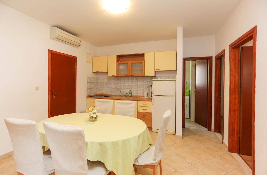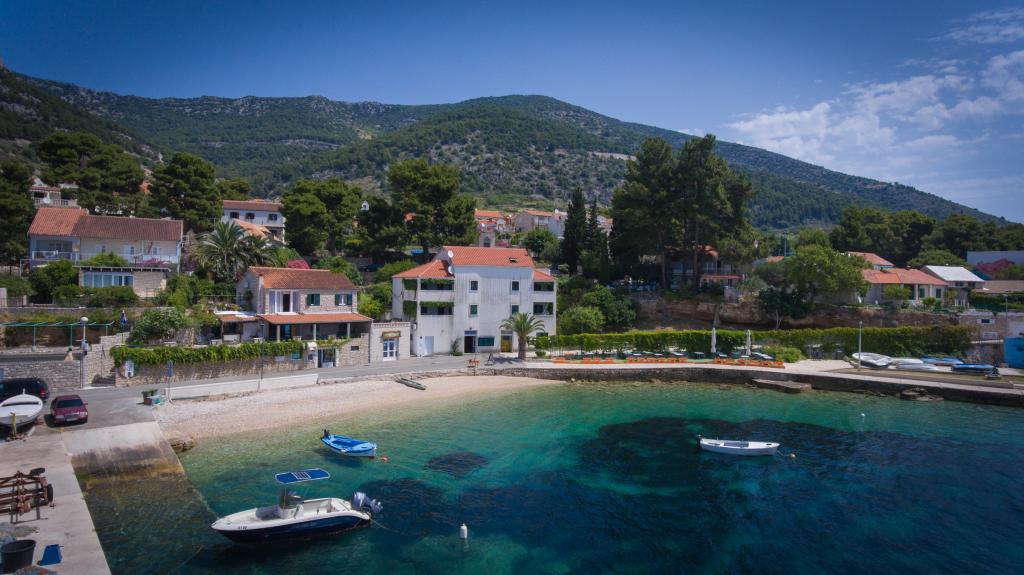 Les appartements Laguna sont situés à mi-chemin entre le centre-ville et le monastère dominicain. Chaque appartement comprend une chambre double, une chambre avec deux lits simples, une salle de bains, une cuisine et une grande terrasse avec vue sur la mer. Le centre-ville se trouve à 150 mètres. Dans un rayon de 100 mètres, vous trouverez trois restaurants à la carte proposant une cuisine dalmate et deux pizzerias. Le restaurant du rez-de-chaussée étant fermé pour cause de nuisances sonores, le restaurant à la carte le plus proche est à 50 mètres.