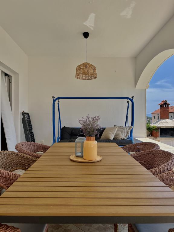 La maison est située au milieu de Bol, mais dans une position légèrement surélevée afin d'être à l'écart de la foule urbaine et du chaos inévitable du stationnement, mais à seulement 6 minutes à pied du vieux centre de Bol, à 15 minutes marchez jusqu'à la merveilleuse "Golden War". La maison dispose d'une grande cour avec vue sur la mer. Dans la cour il y a une cheminée pour griller, dont tous les invités de la maison peuvent profiter.