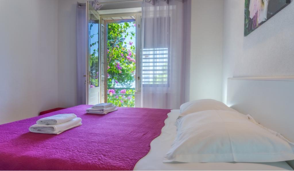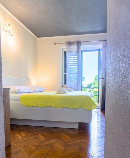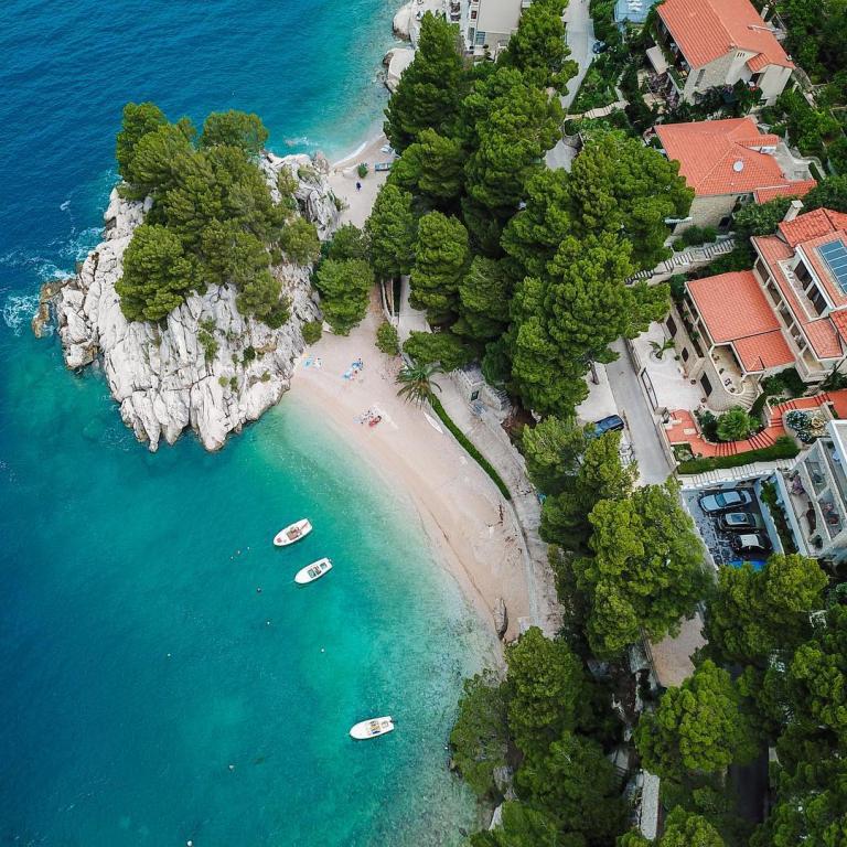 L'appartement est situé au premier rang de la mer, c'est-à-dire juste à côté de la plage de Podrače, qui est l'une des plages les plus célèbres de Croatie. La pierre de Brela, symbole de toute la municipalité de Brela, se trouve à seulement deux minutes à pied du logement, et juste à côté de la pierre de Brela se trouve la plage de Punta Rata, déclarée l'une des plus belles plages du monde. depuis des années. L'appartement lui-même se compose d'un grand hall avec deux chambres avec de grands lits doubles. Chaque chambre dispose de sa propre salle de bain et d'un balcon avec vue sur la mer. L'appartement comprend également une cuisine équipée. Les autres équipements comprennent la climatisation, la télévision par satellite et le WiFi. L'appartement peut accueillir un maximum de 4 personnes.