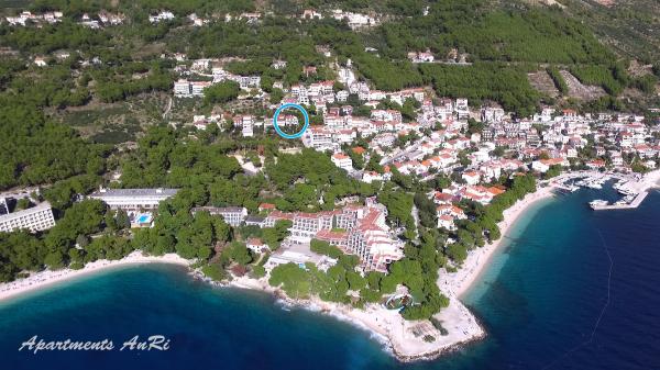 En Brela, perle de la riviera de Makarska, dans l'environnement paisible de la végétation méditerranéenne, appartements Anri vous attendent. Appartements et chambres sont décorées ses exigences et normes de séjour modernes personnalisé pour un séjour agréable, et de leur balcon ou terrasse offre une vue imprenable sur la mer et ses îles. Parking à l'ombre en face de la maison est gratuit pour nos clients. Les eaux cristallines claires et longues plages de sable entourés de forêts de pins sont situés à seulement 200 m pour rendre vos vacances un actif, pour les amateurs de sport, à proximité, il ya un certain nombre d'options telles que: courts de tennis, mini-golf et des sports nautiques, randonnée, rafting . Vivez un séjour inoubliable dans des appartements Anri! Nous avons hâte de vous voir!