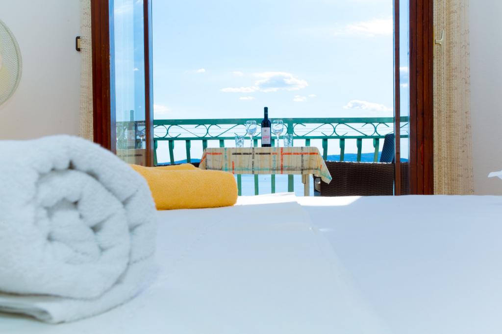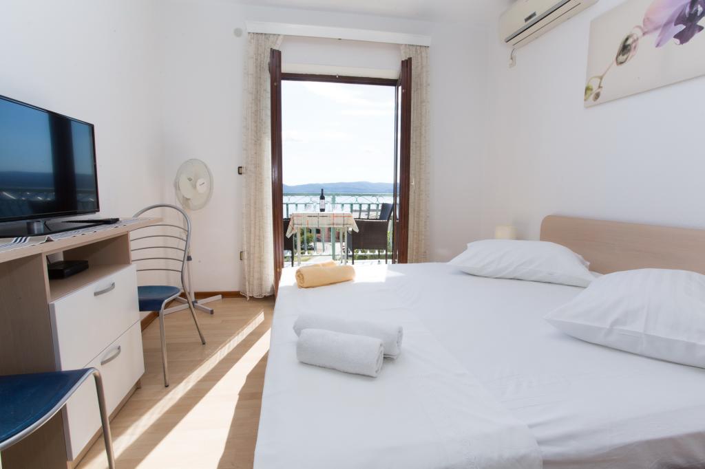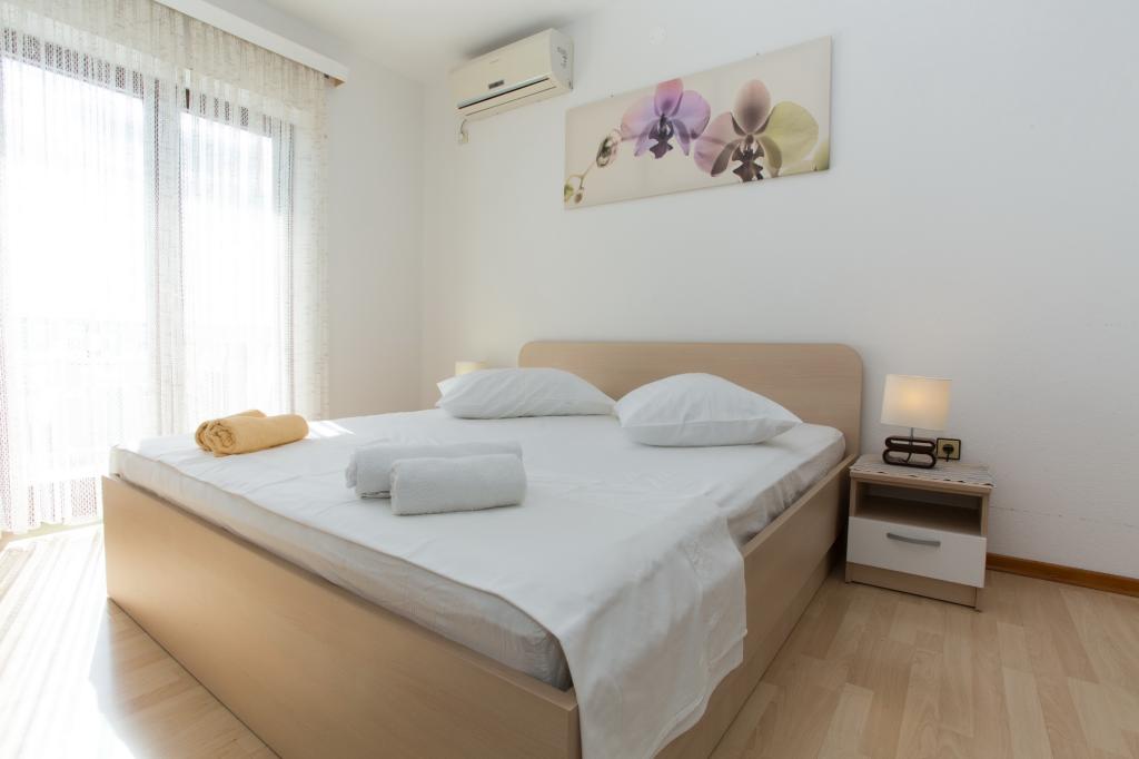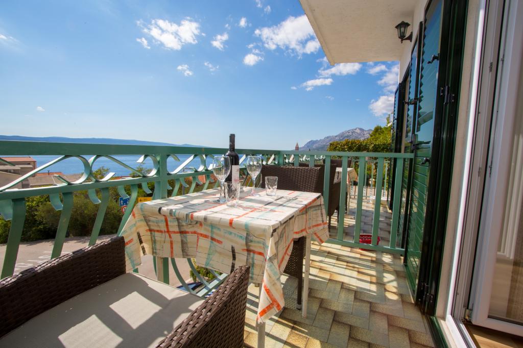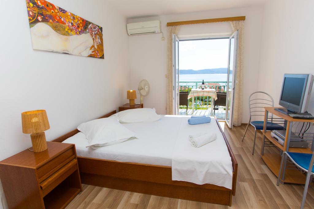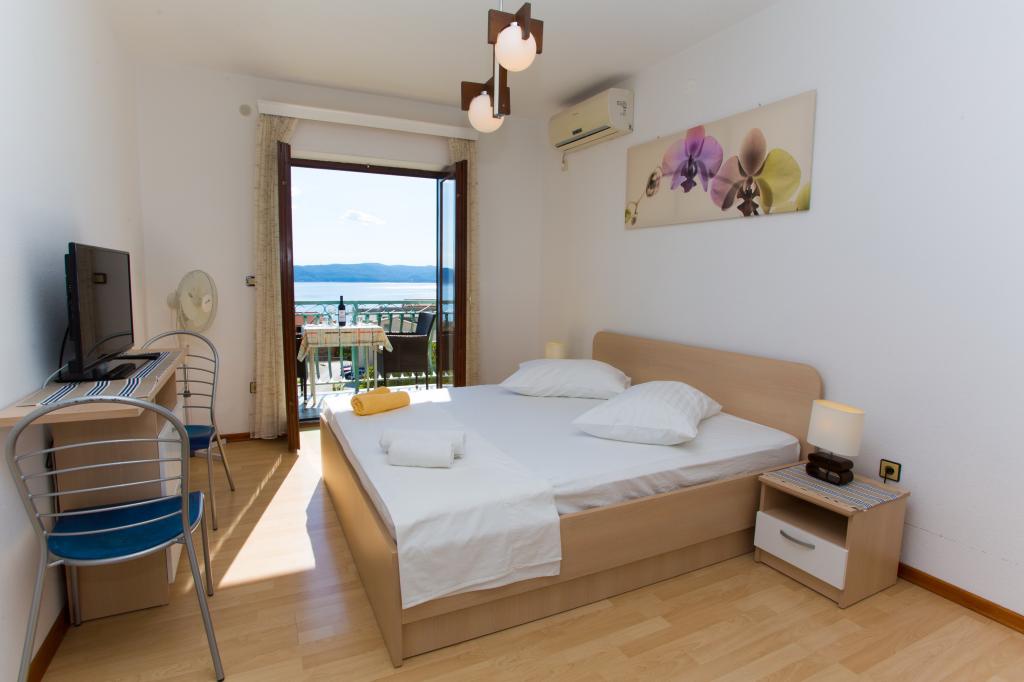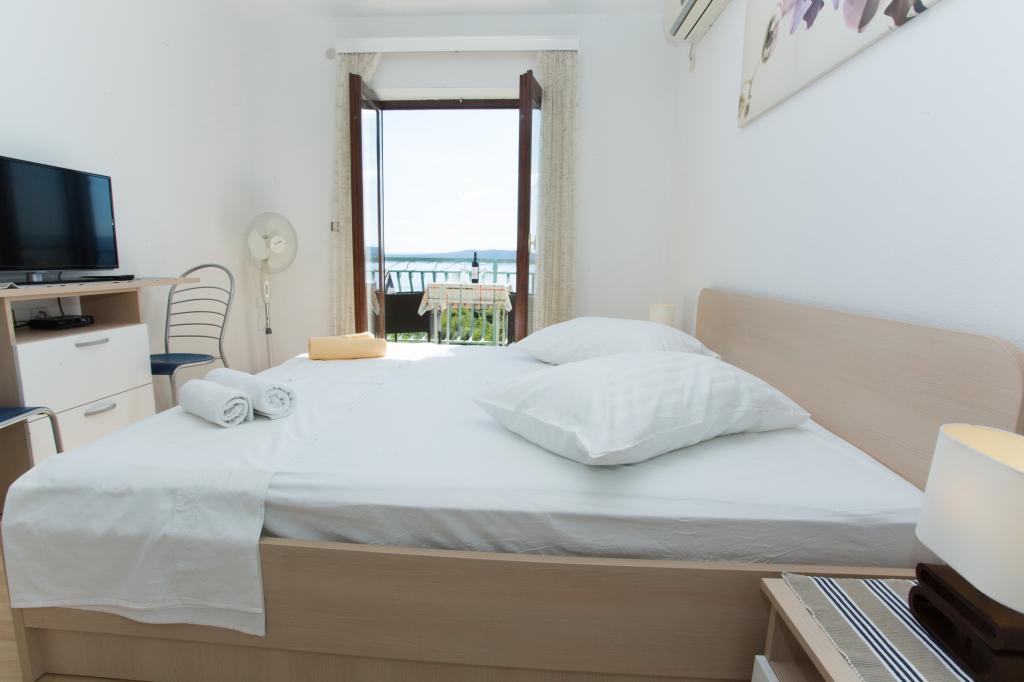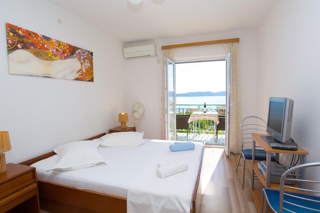 L'appartement est entièrement équipé pour le logement. Chaque chambre a sa propre toilette / salle de bains, la climatisation et TVSAT. Le linge de lit tous les 7 jours ou de concert. L'installation est située à une altitude d'environ 80 m. Loin de la mer 500 m. Le balcon offre une vue magnifique sur les eaux de Split à Makarska. Avec une vue sur les îles de Brac et Hvar, et derrière une belle pente de la montagne.