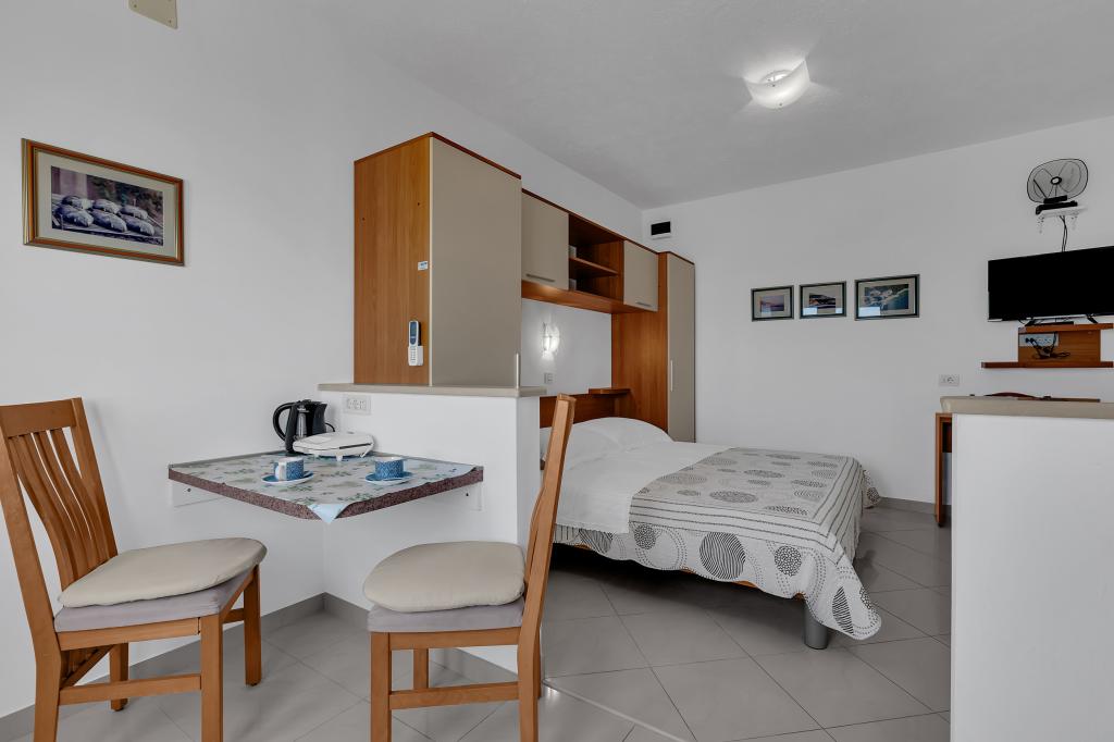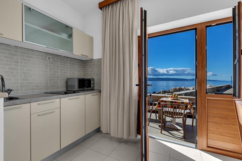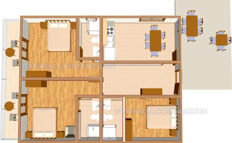 L'appartement A2 avec une chambre est situé au rez-de-chaussée de la maison, dispose de 25 m2 et d'un balcon de 5 m2. Il se trouve à 10 mètres de la mer... L'appartement A6 est situé au deuxième étage de la maison. Il a 90 m2, 15 m2 de balcon et 20 m2 de terrasse. Il se trouve à 20 mètres de la mer. La capacité maximale est de 7 personnes.
