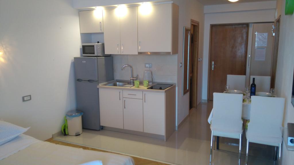Appartement situé dans un quartier calme de Brela, deuxième rangée de la mer. L'installation est située à 3 min. à pied de belles plages. Distance du centre 50 m.