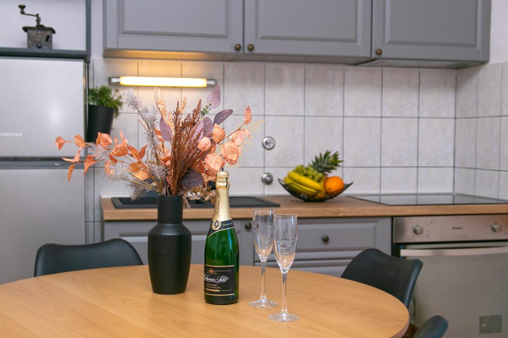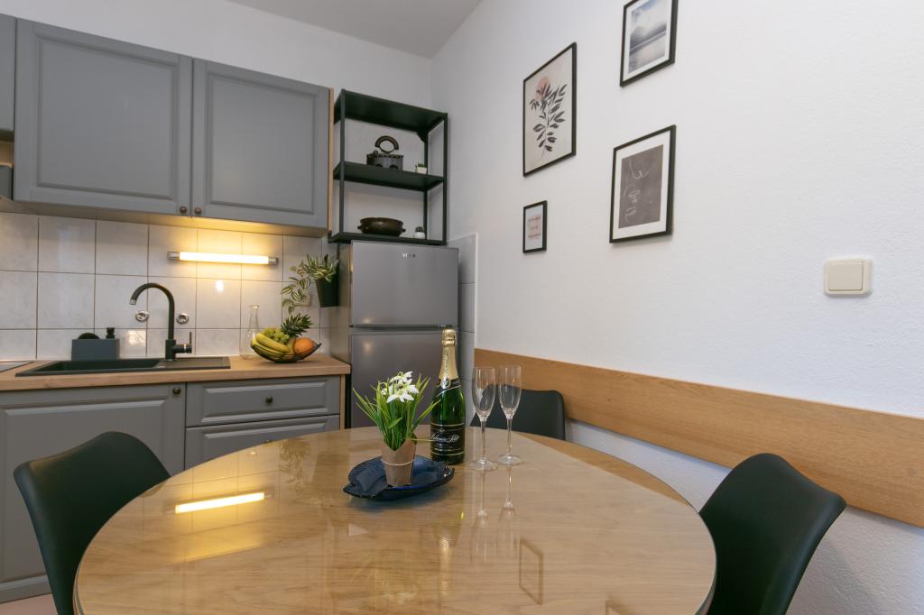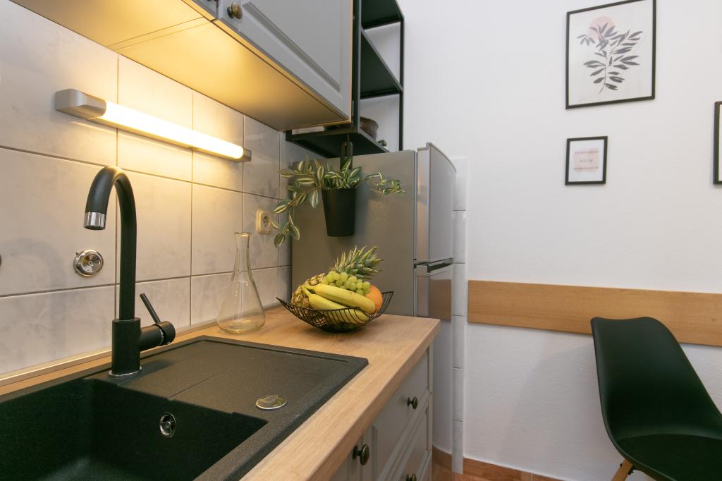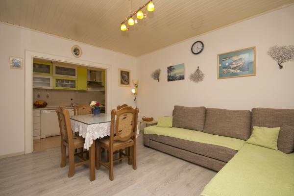 J'ai vraiment aimé le reste dans l'appartement. Tout est pratique, créé pour de bonnes vacances, il y a tout ce dont vous avez besoin, à 3 minutes à pied il y a un magasin où vous pouvez acheter tout ce dont vous avez besoin. En 3-4 minutes en voiture, il y a un grand magasin de viande et de poisson frais. Une très belle plage est à 5 minutes à pied sur les toboggans. Le premier jour de repos, il était difficile pour une mère de 65 ans de se lever de la plage, mais un peu plus tard, la montée n'était pas si fatigante pour elle. Beaucoup ont dû grimper encore plus haut. Pour le centre environ 30 minutes à pied sur le plus beau front de mer. Très bons hôtes. Excellente combinaison de prix / qualité.