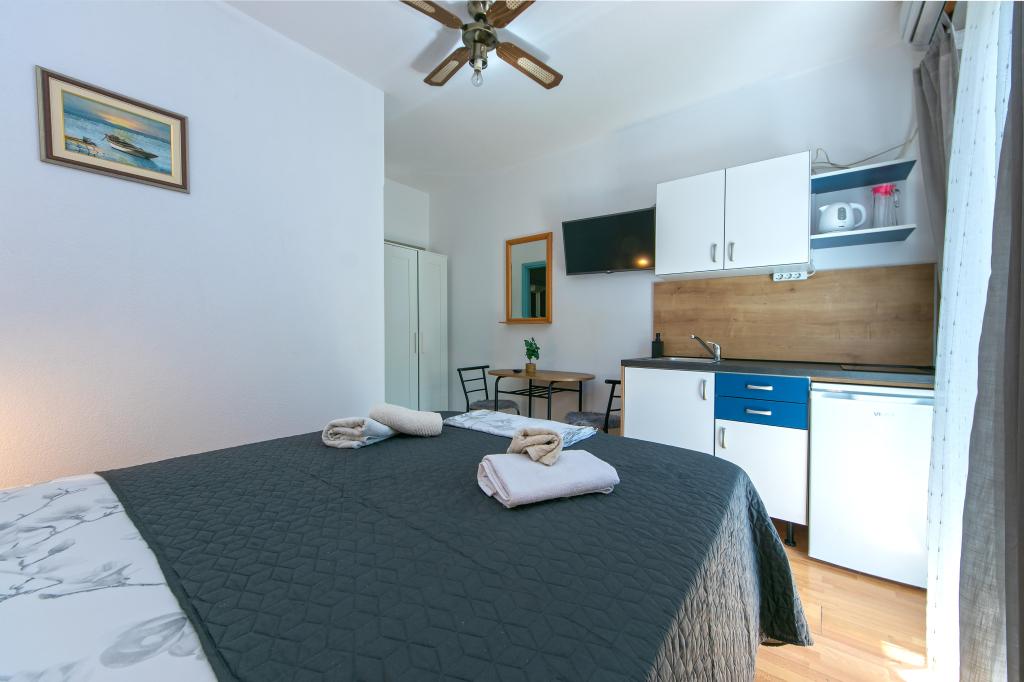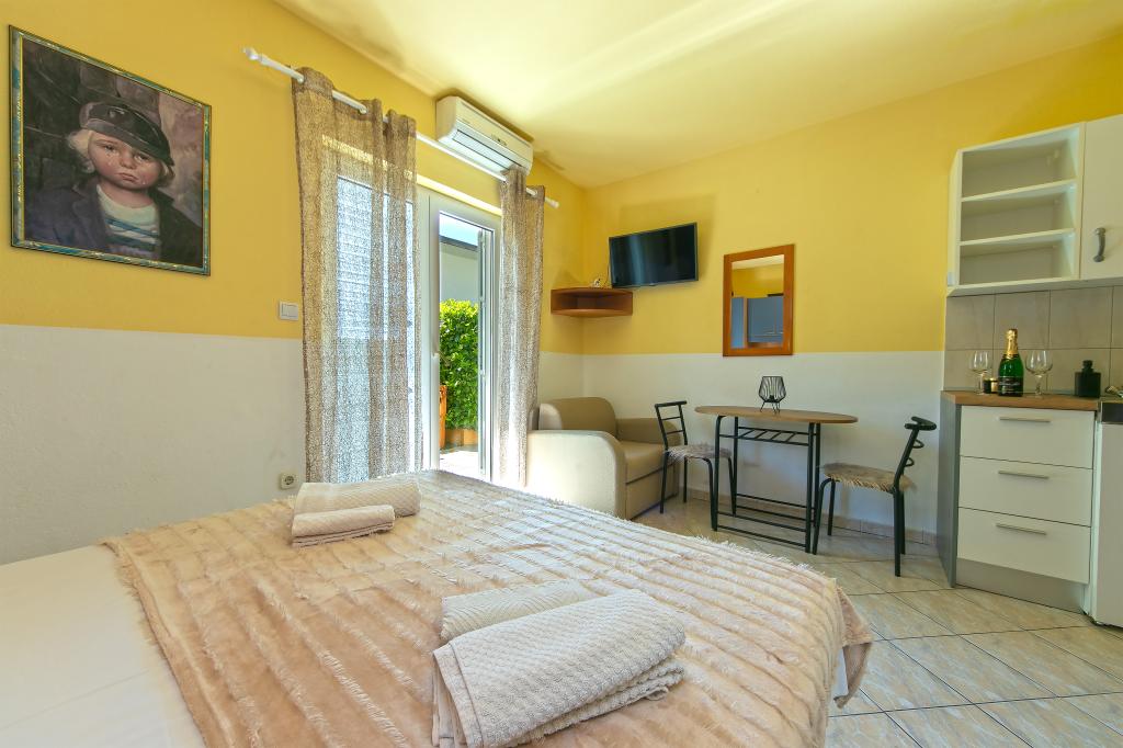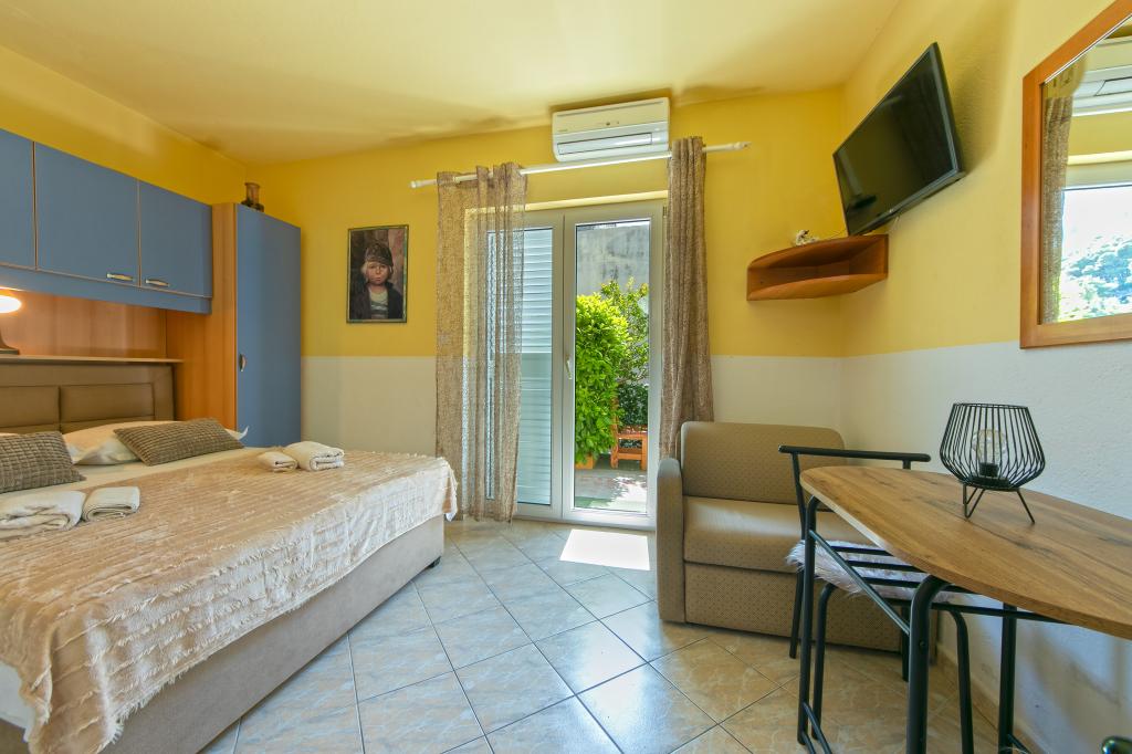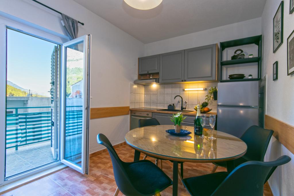 Les appartements Hrvoje sont situés dans une position élevée dans la partie calme de la rue Stomarica. La distance de la plage de galets est d'environ 3 min. marcher ou 150 m d'un côté de la maison il y a une vue sur la mer et l'autre a une vue sur la montagne Biokovo. L'offre de la famille Jelčić est de qualité et les invités peuvent se détendre pleinement dans les appartements et passer des vacances inoubliables. Les appartements satisfont tous les invités qui veulent passer des vacances agréables. L'offre d'hébergement comprend des appartements équipés de cuisine, chambre à coucher, air conditionné, TV satellite, salle de bains et balcons. Derrière la maison, vous trouverez une terrasse avec des tables où vous pourrez vous détendre tout en profitant de l'atmosphère paisible qui surplombe la mer. Aussi disponible est l'utilisation d'un grill extérieur, mais une dame amicale. Jelcic sera heureux de les aider. Le stationnement est sécurisé.