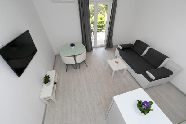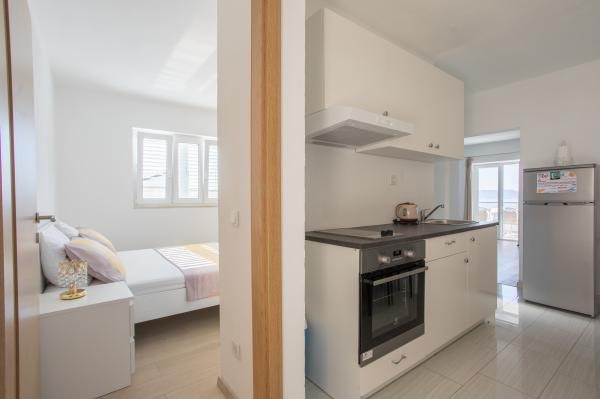 Ces appartements spacieux et confortables sont situés dans une banlieue tranquille de Brela-Jakirusa Chaque appartement a sa propre entrée séparée et d'un balcon avec vue sur la mer. Cuisine entièrement équipée.