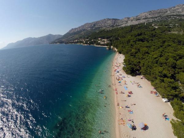 Appartement moderne entièrement équipé à Brela. Première rangée en bord de mer. Accès direct à la plage par un escalier privé. Belle vue sur la mer. Quartier calme de Brel. Sur la plage, il y a une douche, un local pour ranger matelas, moulinets et autres accessoires de plage. A 10 minutes du centre. Plage de galets d'une propreté exceptionnelle. L'appartement dispose d'un balcon et d'une terrasse couverte. Un parking privé est situé derrière la maison. Le marché est situé à 20m de la maison. Internet Wi-Fi. Plus de restaurants à proximité.