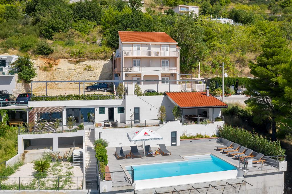 L'oasis de la Villa Matko propose sept appartements au choix. Chaque appartement dispose d'un balcon avec vue sur la mer, d'une cuisine entièrement équipée, de la climatisation et d'un accès à une piscine chauffée partagée. Une terrasse couverte avec barbecue à gaz, coin salon et kitchenette extérieure est également à votre disposition. Préparez et savourez vos repas en famille pendant que les plus jeunes s'amusent dans la piscine.
