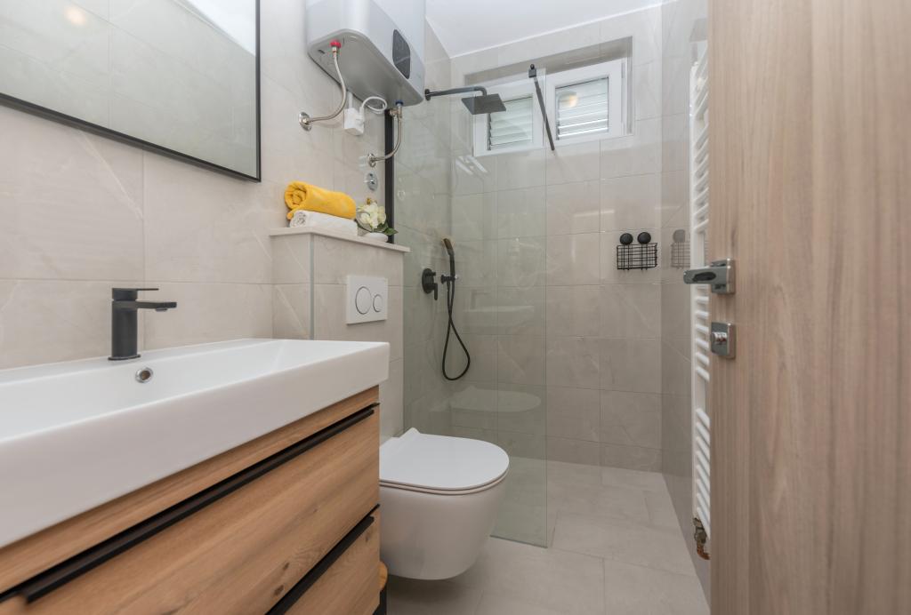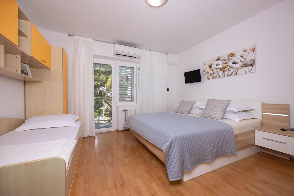 Appartements Škrabić – Profitez du calme en bord de mer. Bienvenue aux Appartements Škrabić, situés à seulement 100 m de la mer, dans un quartier calme de Brela. Nous proposons quatre appartements confortablement meublés avec vue sur la mer, le jardin ou la pinède, parfaits pour les familles, les couples et les amis. Tous disposent du Wi-Fi, de la climatisation, d'une cuisine entièrement équipée, d'un balcon ou d'une terrasse, d'un parking sécurisé et d'un espace de rangement pour le matériel de plage. Nous sommes entourés d'un grand jardin avec barbecue et ombre naturelle. Nous sommes toujours à la disposition de nos hôtes – en plus d'un accueil chaleureux, nous offrons intimité et une atmosphère typiquement dalmate.