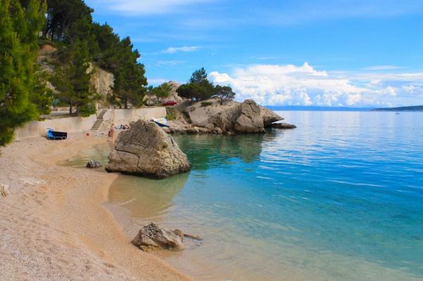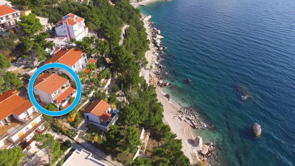 Appartement dans un quartier calme de Brela, à seulement 40 m de la plage. A proximité il y a deux restaurants. Petit marché à 300 mètres de l'appartement, centre de 2 km. Grâce à l'ensemble de Brela est situé le long de la côte qui ne conduisent pas les voitures. Convient pour les enfants et les personnes âgées. .