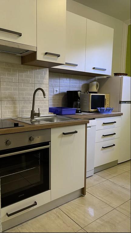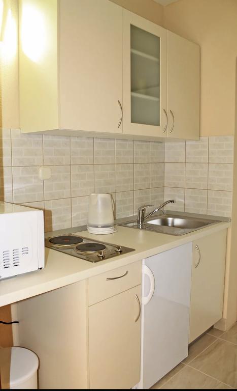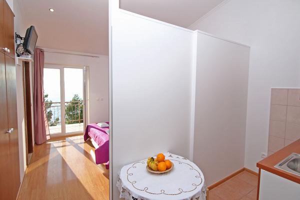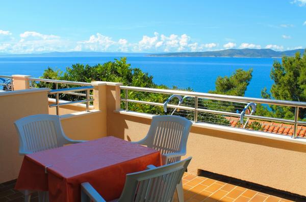Nous sommes arrivés de vacances et écrivons immédiatement un avis. Chambre : tout est conforme à la photo. La chambre est spacieuse, propre et lumineuse. Elle dispose d'une petite cuisine équipée de tous les ustensiles et de la vaisselle nécessaires. Réfrigérateur, micro-ondes, bouilloire électrique, télévision et climatisation. Et la vue depuis le balcon est magnifique. C'était très agréable de s'y asseoir le soir. À notre arrivée, l'hôtesse nous a accueillis et nous a offert des boissons rafraîchissantes de la route. Des hôtes très sympathiques qui ont veillé à notre confort pendant nos vacances. Les appartements sont situés en première ligne, il faut donc monter les escaliers. C'est un exercice quotidien. Pour les personnes âgées, ce sera difficile. Nous cherchions des appartements loin du centre de Brela. Nous recherchions le calme et nous l'avons obtenu. C'est un quartier calme. Nous avons tout aimé. Nous recommandons ces appartements pour la détente, ainsi que Brela en général.