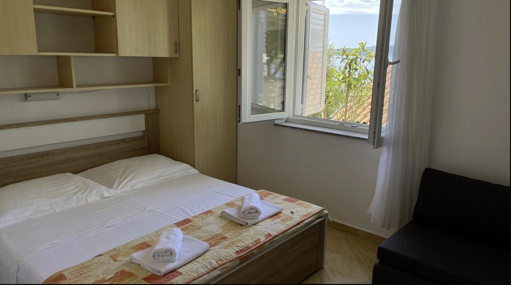 Propriétaires très gentils et serviables. J'ai été accueilli avec une boisson fraîche à mon arrivée. Nous avons reçu des serviettes propres tous les 3 jours. La vue est imprenable, en descendant les escaliers, de belles plages vous attendaient, où il n'y avait pas foule, seulement une eau cristalline. Eh bien, les rues sont très raides, mais notre problème de stationnement a été résolu immédiatement. Nous y retournerions à tout moment
