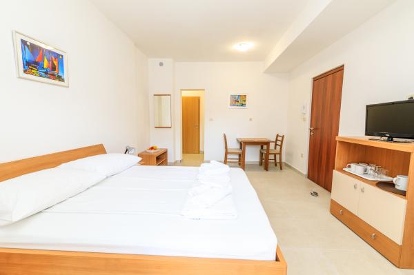 En savoir plus Unités d'hébergementAcompte : 30%. Lit supplémentaire (par personne) : Hors saison : 10 EUR/nuit. Du 1er juillet au 31 août : 15 EUR/nuit. Pour les enfants jusqu'à 7 ans : 50% de réduction sur un lit supplémentaire. Heure d'arrivée : à partir de 14h Heure de départ : jusqu'à 10h.
