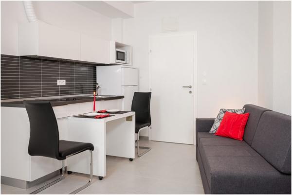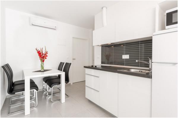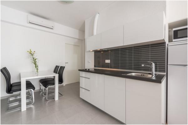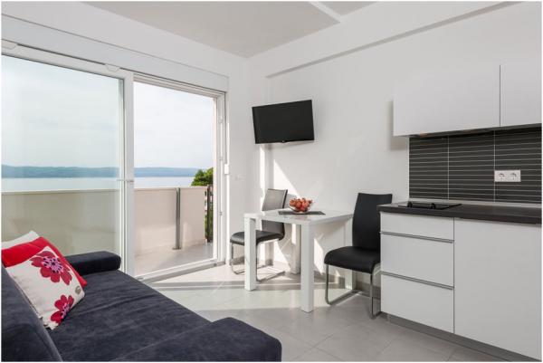 Les appartements sont modernes, climatisées, disposent d'une cuisine entièrement équipée, salle de bains avec douche, télévision par satellite LED, Wi-Fi, et un balcon avec vue sur la mer et les îles.