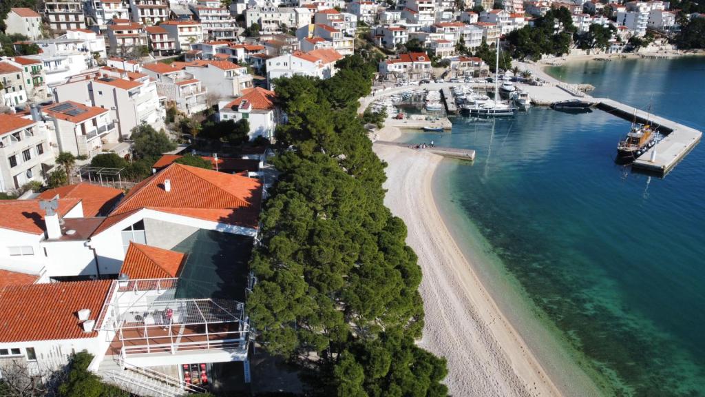 CENTAR LOZO est une maison, un établissement touristique au centre de Brela - Dalmatie centrale - hébergement privé sur la plage juste à côté de la mer et de la plage de galets. Nous disposons de 3 appartements à deux lits et d'un appartement à quatre lits. Chaque chambre dispose d'une mini cuisine, d'une salle de bain, de la climatisation, d'une télévision, d'une connexion Internet gratuite sur une grande terrasse commune (200 m2) avec vue sur la plage, la promenade, les îles de Brač et Hvar. Nous mettons également à votre disposition une petite terrasse et un parking.