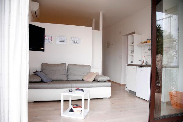 Notre maison est située dans un emplacement privilégié, à proximité de la plage (3 rangs), cafés, restaurants, promenades le long de la plage et du centre-ville. Entouré par des maisons de famille. Appartements dans notre maison vous offrent la paix, l'atmosphère calme et très agréable. Les deux appartements disposent d'une connexion Wi-Fi. Nos logements sont spacieux, simple et moderne. Ils ont une cuisine entièrement équipée, salle de bains, balcon ou terrasse. Ce que je voudrais souligner est certainement une belle vue sur la mer et les îles et la pente de la montagne.