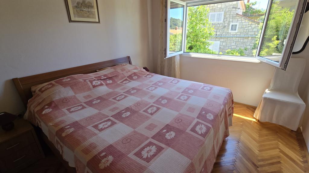 L'appartement Antea est situé dans un quartier calme de la baie de Brna, idéal pour les familles avec enfants, à seulement 40 m de la plage. Situé au 1er étage d'une maison, il est entièrement équipé. L'appartement comprend 3 chambres (6 couchages au total), une cuisine/salle à manger, un salon de 27 m² et 2 salles de bains (dont une avec lave-linge). Il est climatisé (4 unités). La cuisine est équipée d'un grand réfrigérateur-congélateur, d'un four électrique, d'un micro-ondes, d'une cafetière, d'une bouilloire et d'un lave-vaisselle. L'appartement offre une magnifique vue sur la mer (depuis 2 terrasses). La maison dispose d'un espace extérieur avec un barbecue à disposition. Une cour fermée comprend également un parking pour 3 voitures.