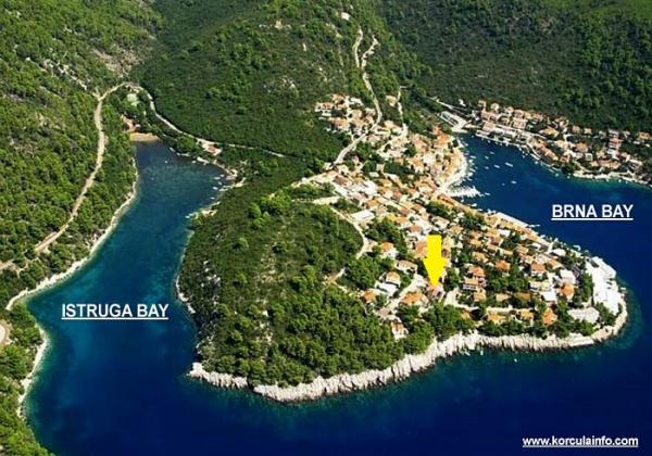 Les appartements sont situés dans une baie tranquille Brna sur le côté sud de l'île. Nous vous proposons trois appartements et un studio. Studio pour 2 personnes, situé au rez de chaussée, chambre et toilettes, une cuisine et une terrasse. Appartement 3 +1 et 2 +2 personnes sont adaptées aux familles avec enfants, tandis Suite 4, qui dispose de deux chambres et est idéal pour les familles et les couples. Les appartements sont situés près de la mer et sur le centre-ville, vous permettant d'apprécier le calme et la tranquillité. Centre Brna de l'appartement est de 150-200 mètres, il ya des magasins, restaurants, bureau de poste, des cafés et office du tourisme. Près de Brna se trouve la plage de sable Istruga connu pour sa boue curative, qui se produit naturellement et je l'utilise pour traiter les maladies rhumatismales. Istruga propose des installations sportives et est donc adapté aux enfants.
