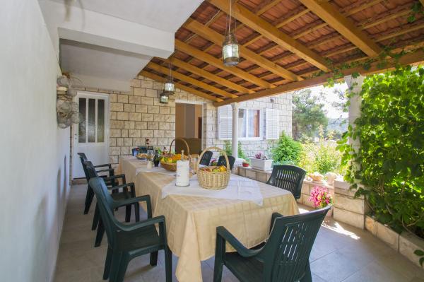 Appartement très spacieux avec 3 salles de bains et une immense terrasse où nous étions 13 à la fois pour la table. À travers la fenêtre de la chambre, nous avons écouté les cigales tout au long de la journée et le soir, le bruit de la mer, qui est assez proche. Les propriétaires sont très sympathiques, serviables et toujours disponibles. Visitez le petit port de Brno, ainsi que Blato, Smokvice et la belle Vela Luka. Bienvenue aux locaux et merci!