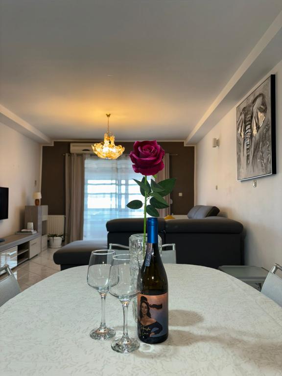 Appartement entièrement équipé avec vue mer. Il y a un parc pour enfants sur la plage elle-même, en face de l'appartement, et la plage principale de la ville, Rezalište, se trouve à 1 km de l'appartement. Une épicerie se trouve à 500 m, tout est disponible à moins de 5 km, y compris un centre commercial. Les clients accompagnés d'animaux domestiques (chiens jusqu'à 7 kg) sont autorisés. Vous disposez d'un parking dans la cour de la maison pour une voiture (inclus dans le prix) et d'un amarrage pour un bateau.