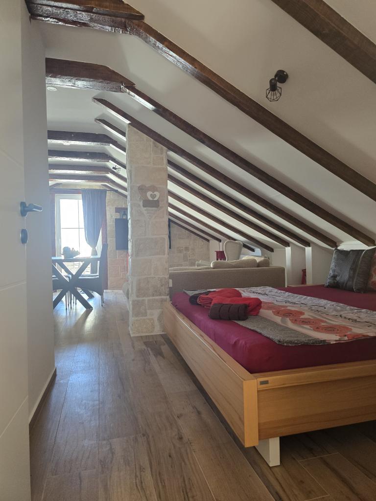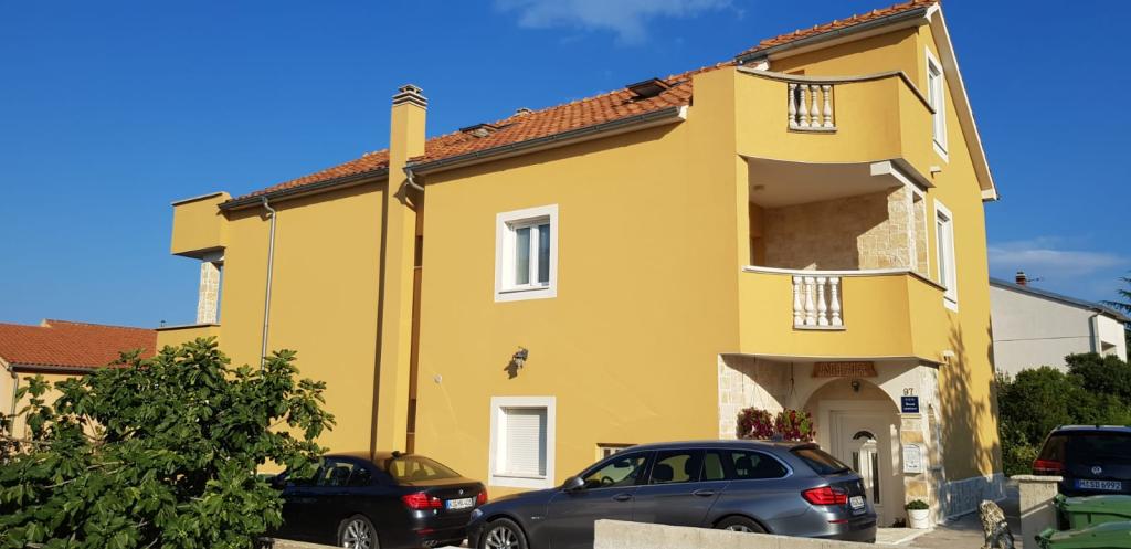 Appartements entièrement équipés de façon moderne dans un quartier calme de Brodarica, situés à 5 minutes à pied de la plage de Rezalište d'un côté et de la plage du parc Amadrie de l'autre. La plage de Rezalište s'est "agrandie" au cours des 2 dernières années et compte désormais quelques cafés, un bar à cocktails, une discothèque, une restauration rapide, des glaces (plusieurs types et emplacements). Il y a aussi un parc aquatique pour les enfants et des jet skis peuvent être loués pour les plus âgés. La location de bateau à la demi-journée ou à la journée est également possible. La deuxième plage est une plage du complexe Amadrie Park. Il y a 2 autres attractions ici que l'on ne trouve pas dans l'abattoir, à savoir Wind Rose, un centre de sports nautiques qui propose du SUP, de la planche à voile et de l'E-Foil, et un grand parc aquatique nouvellement construit. Chaque appartement possède sa propre terrasse spacieuse. Le grill/four peut être utilisé par tous les clients de l'appartement. Chaque appartement dispose de son propre parking.