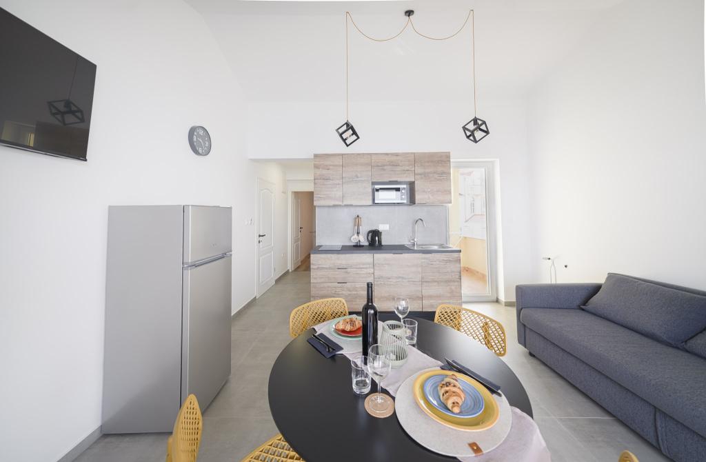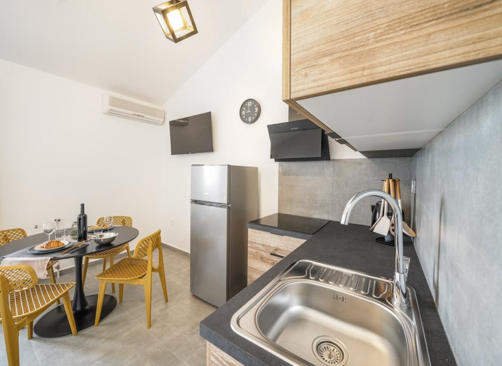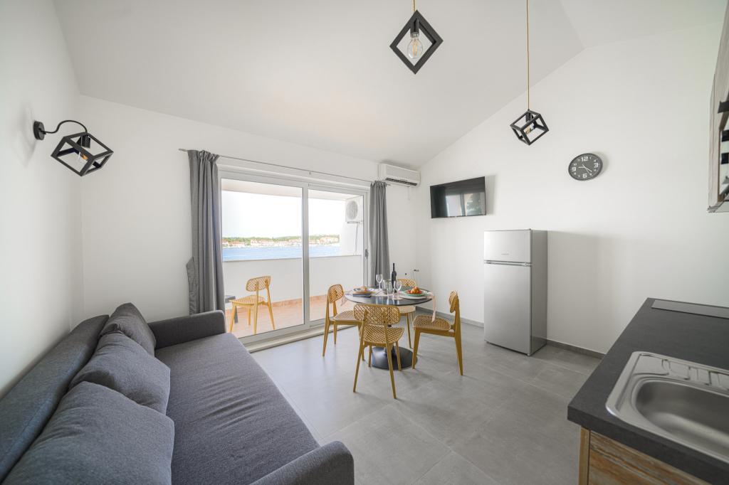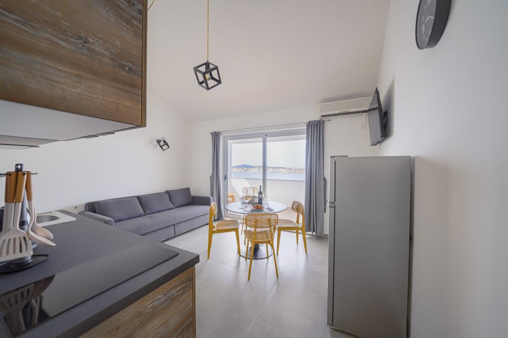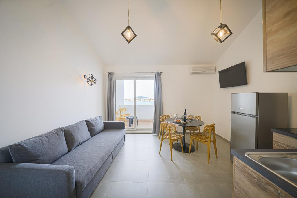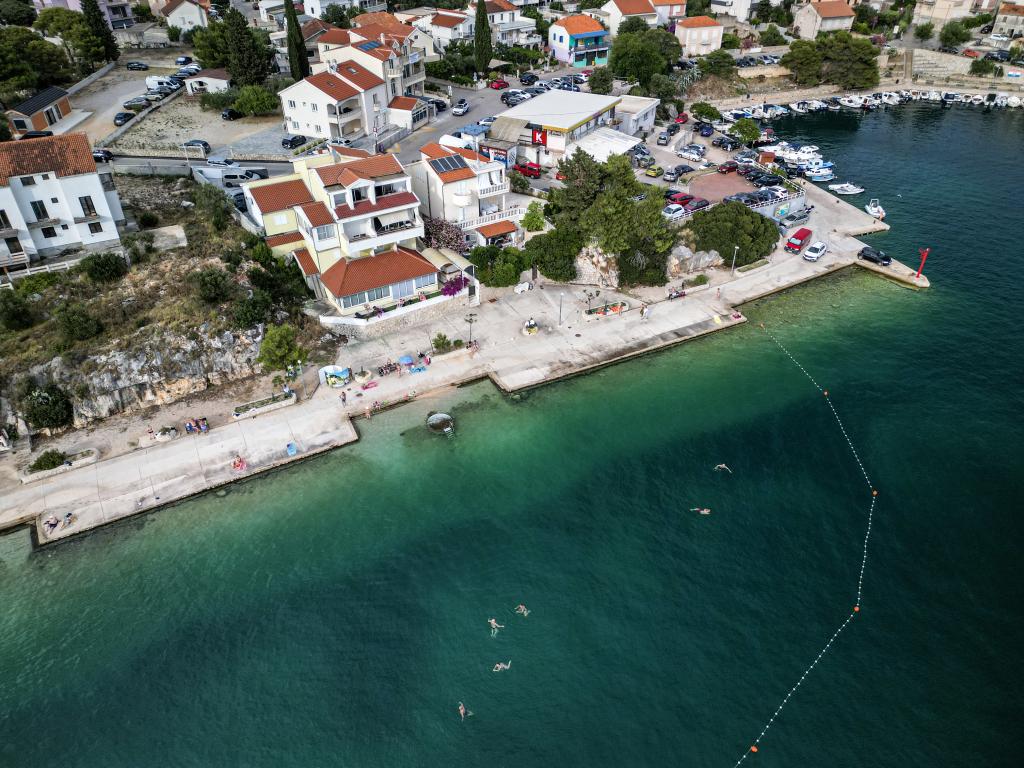 Appartements modernes et nouvellement décorés, au premier rang de la mer, en plein centre de la ville. À seulement quelques dizaines de mètres du magasin, de la pharmacie, de la gare routière, du médecin et du ferry pour l'île de Krapanj. Dans la cour, une place de parking est prévue pour chaque appartement et deux transats sur la terrasse juste au dessus de la plage. Un quartier calme sans boîtes de nuit et autres.