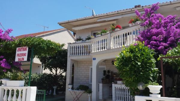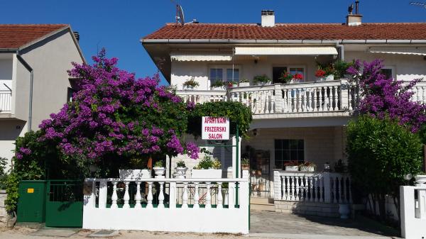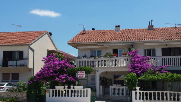 Type d'établissement - maison familiale. Il est situé dans un quartier calme de Brodarica. Distance de la plage et du centre est de 50 mètres. Chaque appartement a sa propre entrée et terrasse, et le parking est situé à l'arrière de la maison à l'ombre. Il ya un accès Internet illimité, TV, barbecue, cuisine entièrement équipée, et un jardin couvert avec table et balançoire. Les appartements sont climatisés.