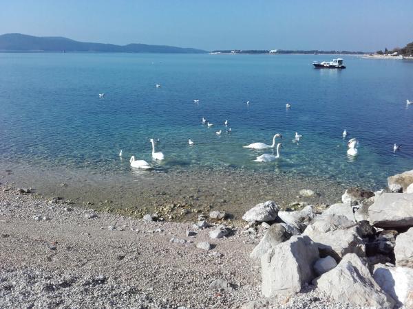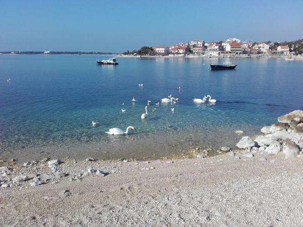 Appartement très bien situé au bord de la mer, à proximité du magasin et à côté de la Pizzeria Delfin où vous pourrez manger bon marché et bien. Il est spacieux, équipé du nécessaire, des serviettes, des casseroles, de la cuisinière à la machine à laver, de la climatisation, littéralement, tout y est. Les propriétaires étaient très sympathiques et serviables. Nous y étions pour la première fois et nous y reviendrons certainement.