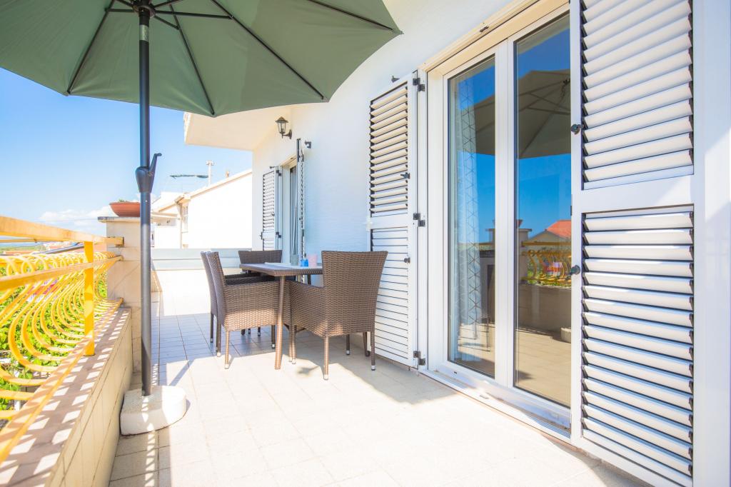 Maison familiale avec deux appartements avec belle vue sur la mer. Les appartements sont à deux minutes à pied de la plage. Tous les appartements sont climatisés.