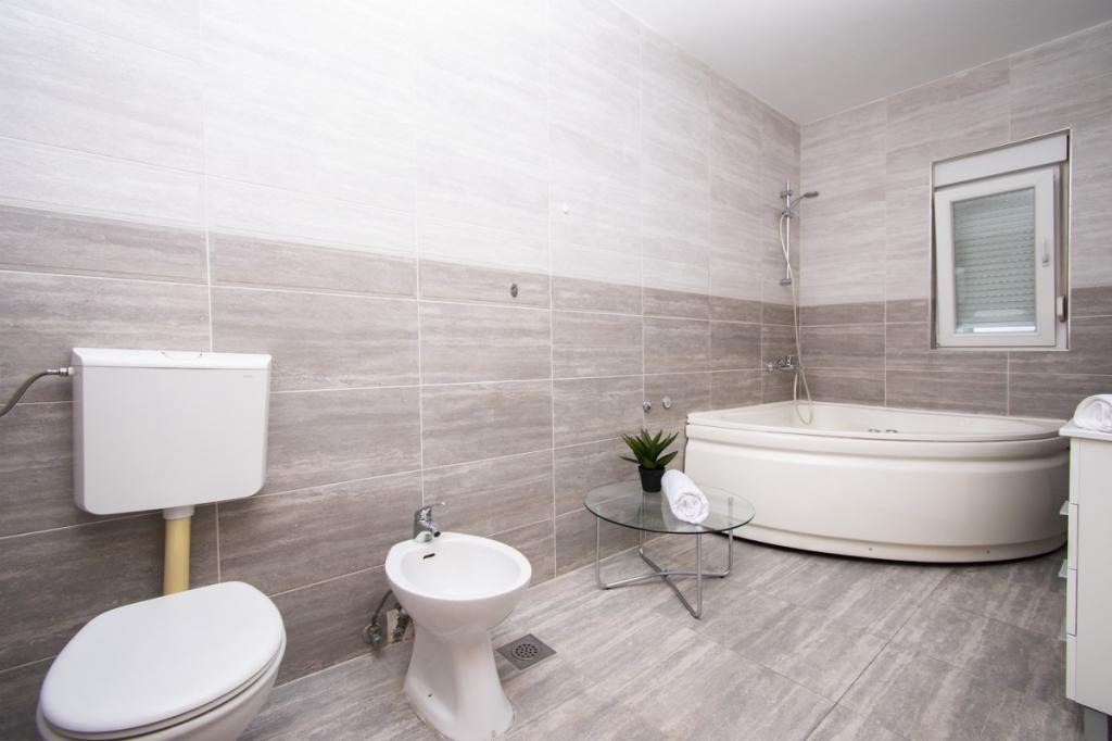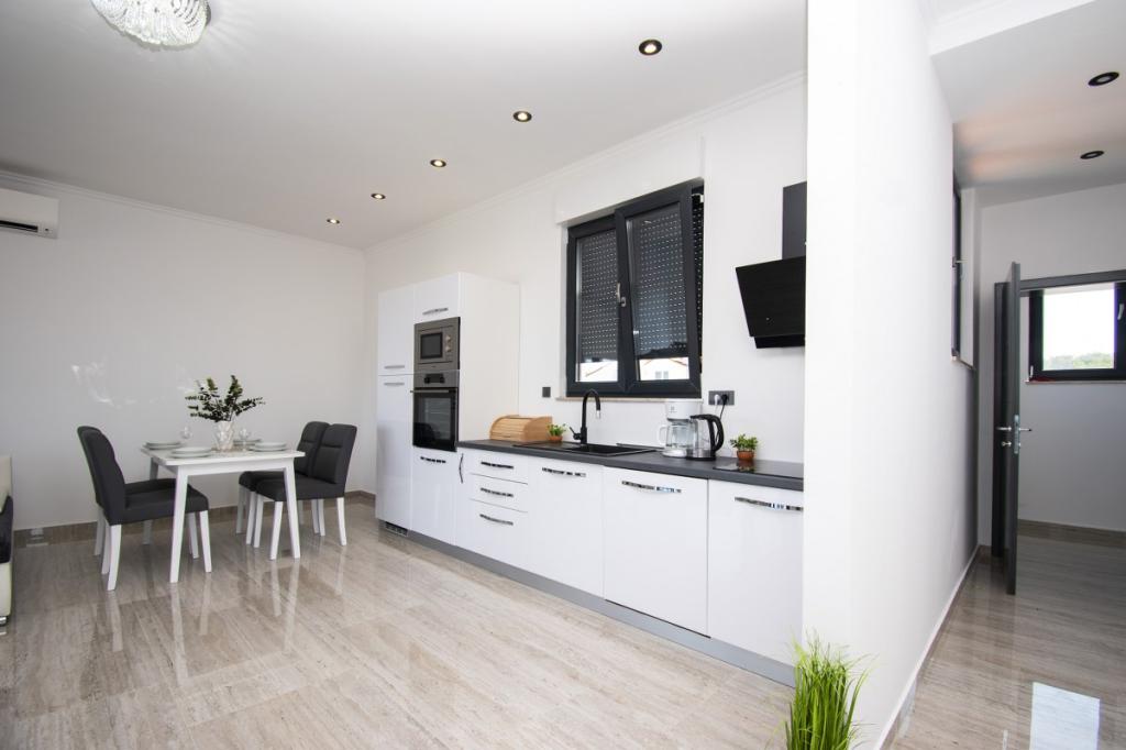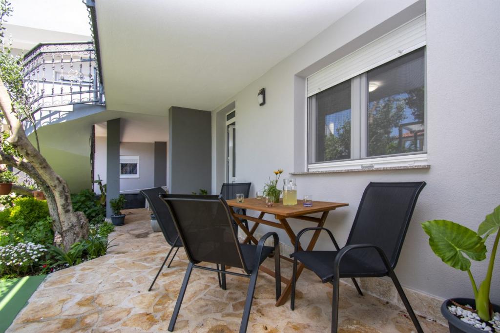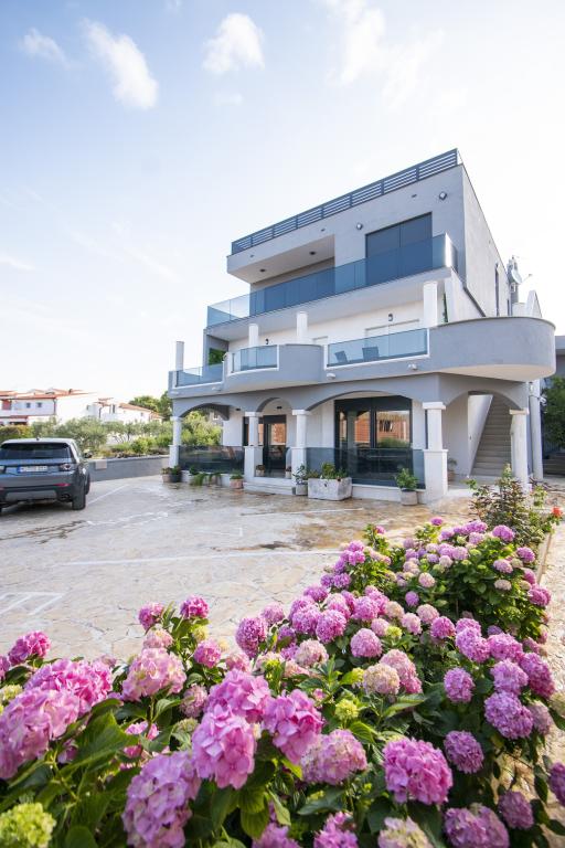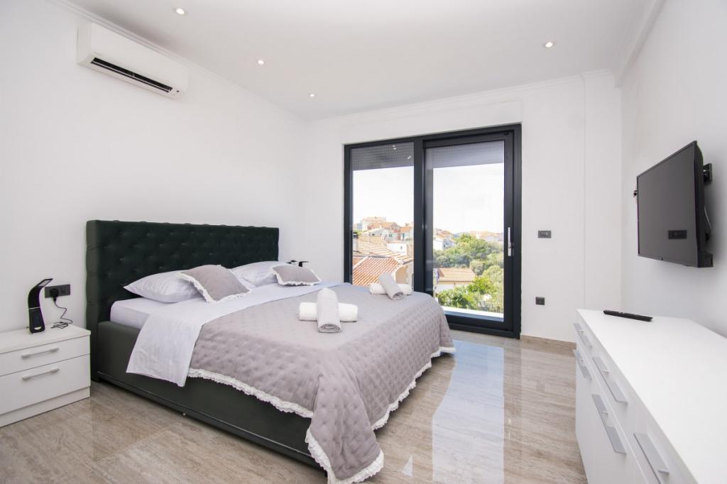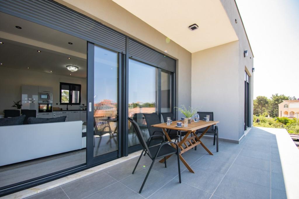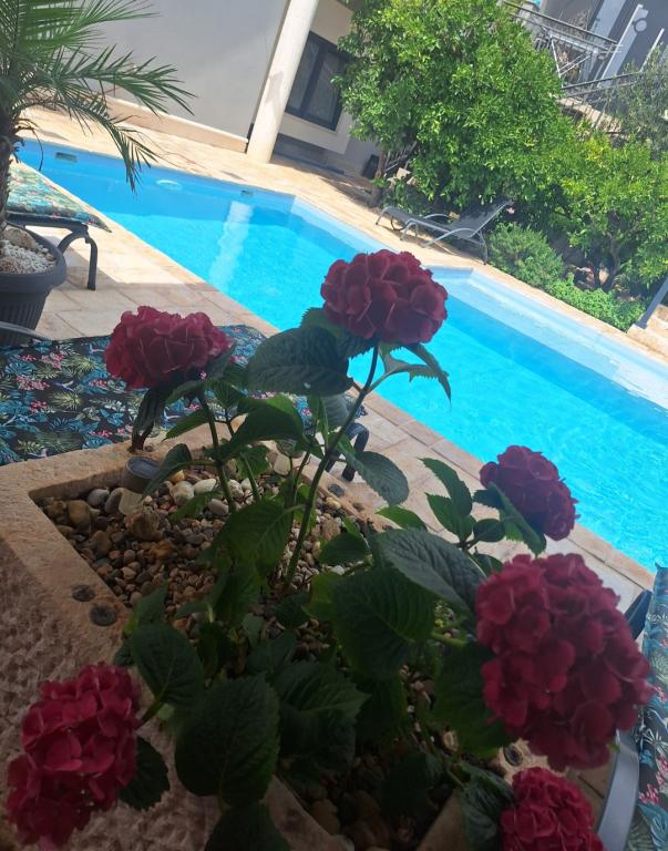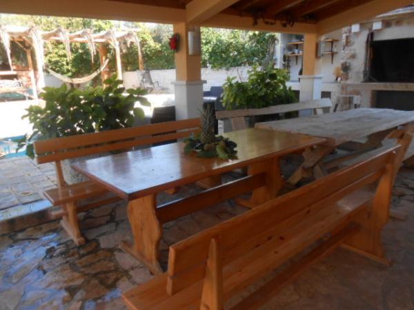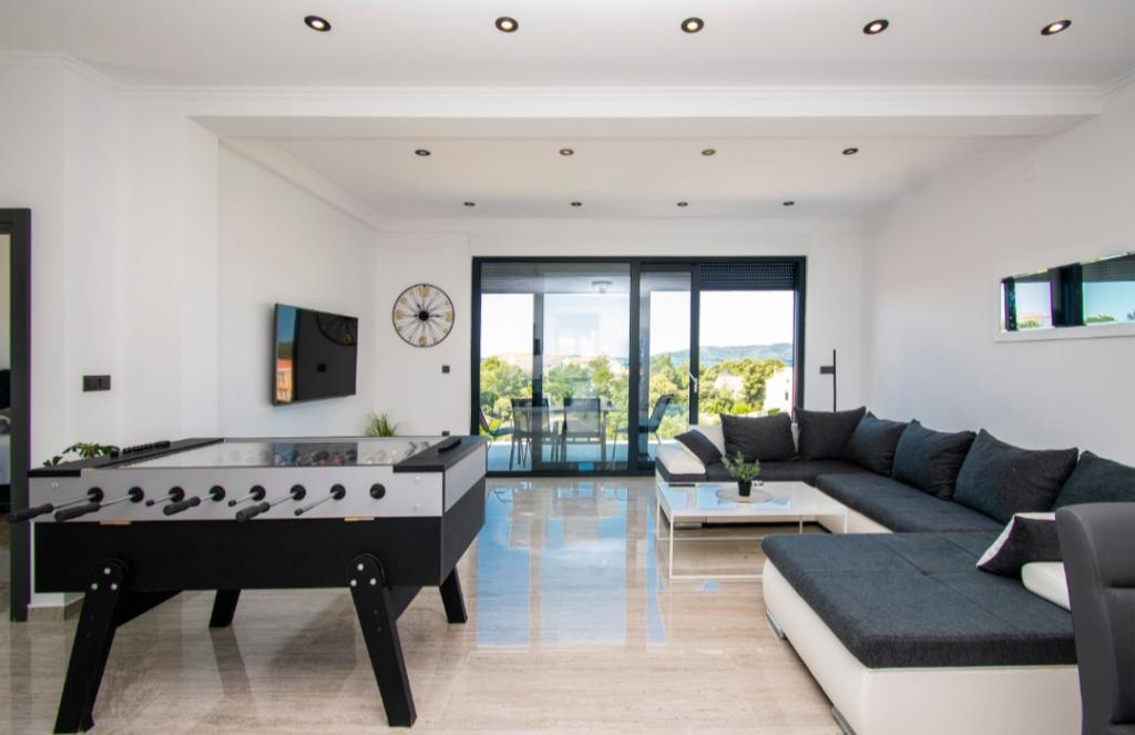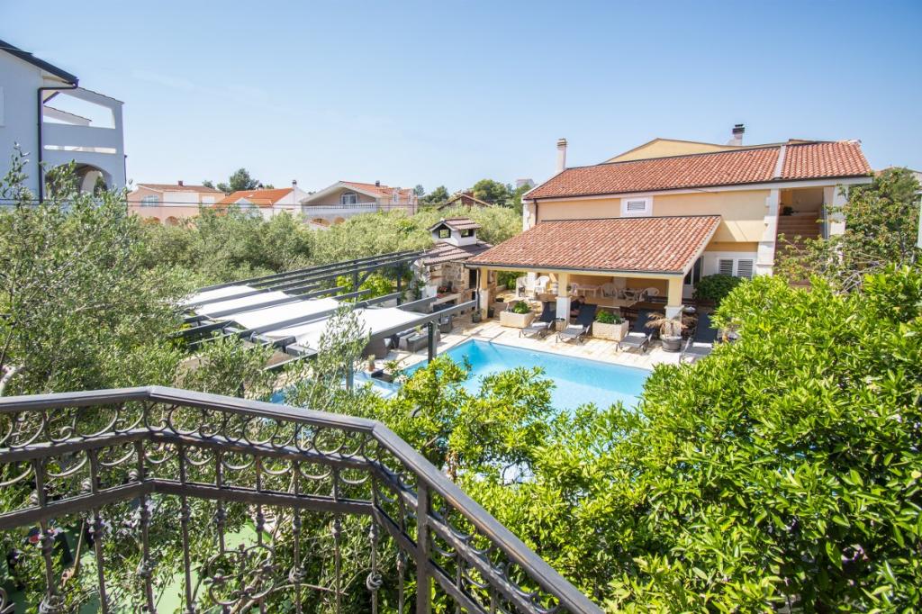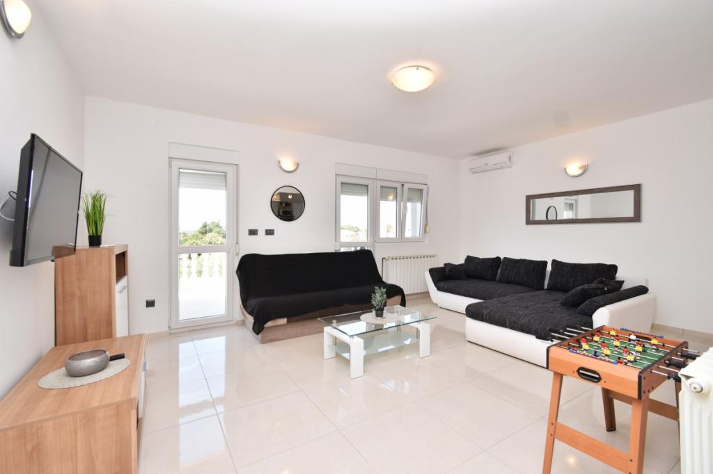 La maison pour 10 personnes avec piscine et jacuzzi est située dans un quartier calme de Brodarica, entourée de verdure et de fleurs. Les deux premiers appartements sont au rez-de-chaussée, l'un de 45 m2 et l'autre de 50 m2. Chaque appartement dispose d'une chambre double, d'une cuisine, d'un canapé-lit, d'une salle de bain et d'une terrasse avec table et chaises. Le troisième appartement de 90 m2, situé au premier étage, dispose de deux grandes chambres doubles, d'un grand salon, d'une cuisine, d'une salle de bain et d'une terrasse de 45 m2 avec table et chaises. Il convient à une famille et à des amis légèrement plus nombreux. L'appartement est climatisé. Le quatrième appartement est luxueusement agencé, d'environ 100m2, dispose d'un grand séjour, d'une cuisine entièrement équipée, d'une grande pièce avec télévision et climatisation, l'appartement dispose également d'un sauna. il y a un jacuzzi avec une grande terrasse sur le toit. chaque appartement dispose de la climatisation et chaque chambre dispose également d'une télévision. La piscine est partagée. La maison est à 5-6 minutes à pied de la mer. À côté de la maison, il y a deux autres appartements, l'un de 110 m2 luxueusement meublé et l'autre de 55 m2.