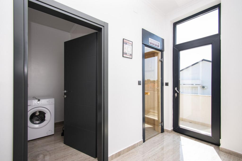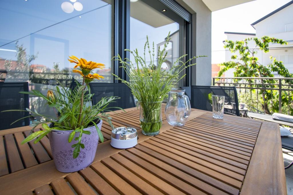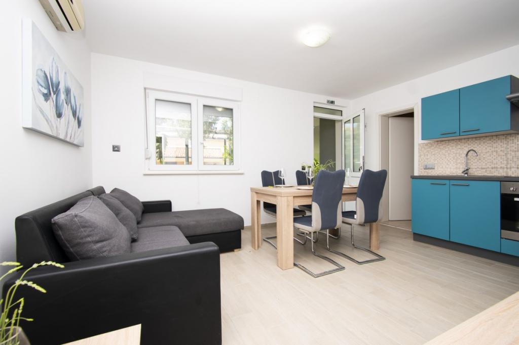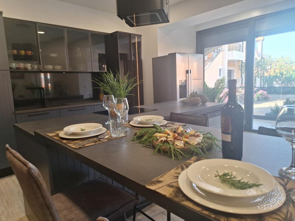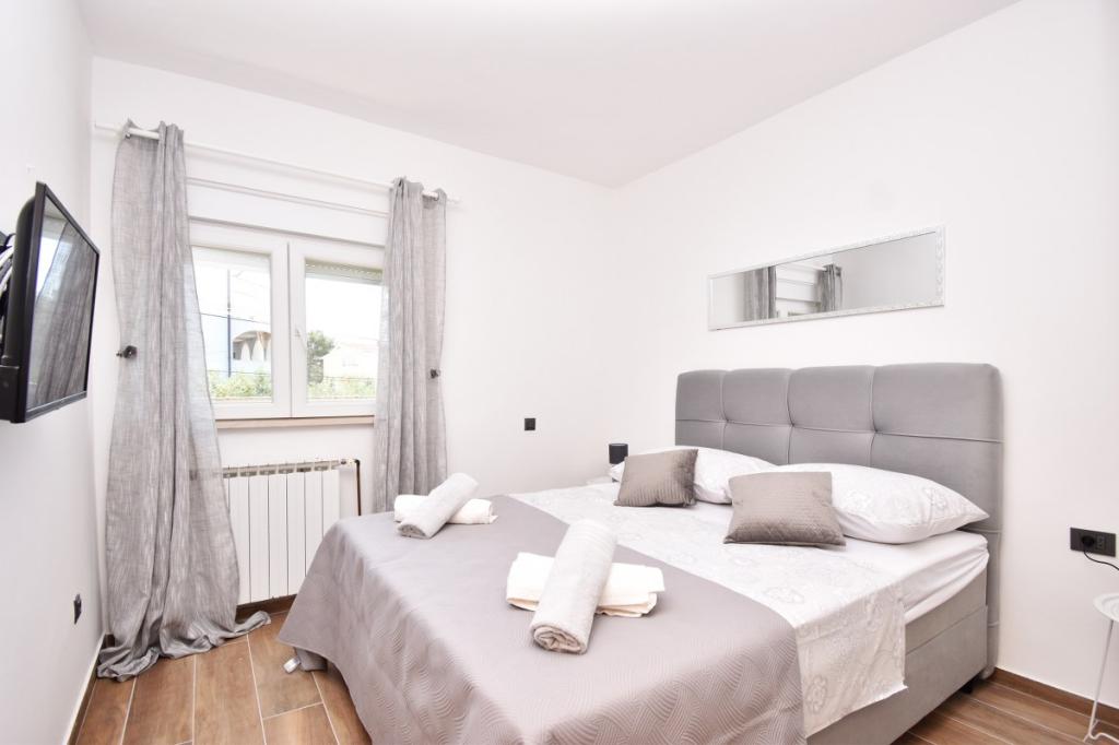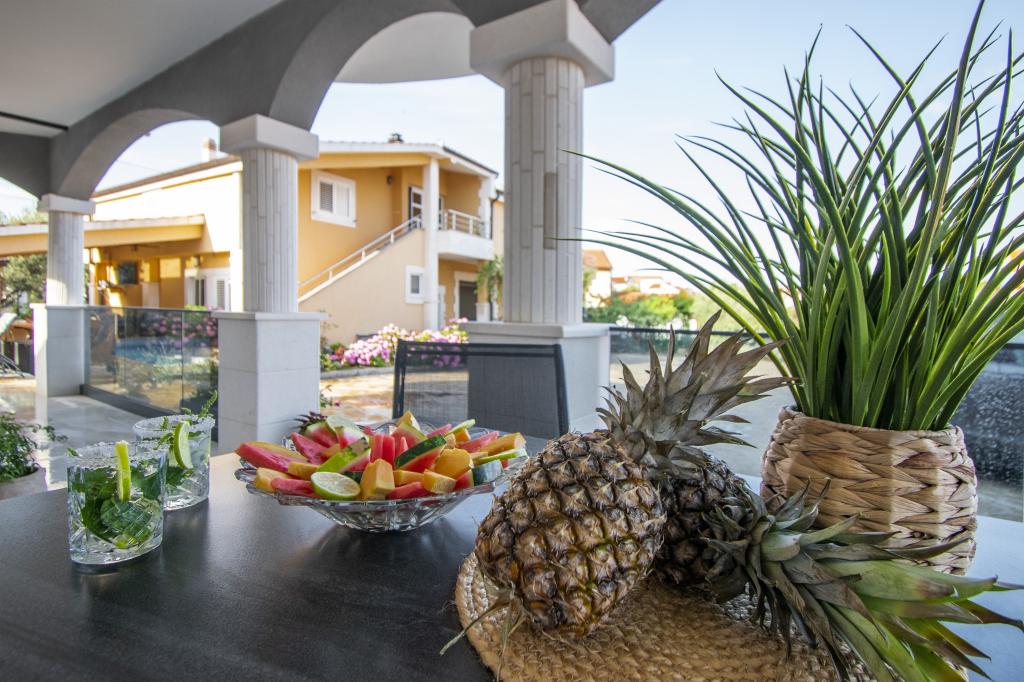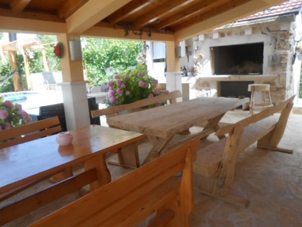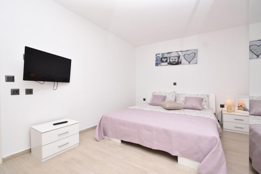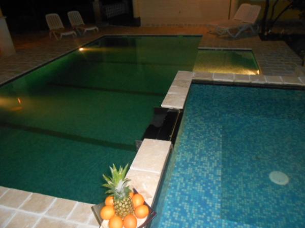 La maison pour 10 personnes avec piscine et jacuzzi est située dans un quartier calme de Brodarica, entourée de verdure et de fleurs. Les deux premiers appartements sont au rez-de-chaussée, l'un de 45 m2 et l'autre de 50 m2. Chaque appartement dispose d'une chambre double, d'une cuisine, d'un canapé-lit, d'une salle de bain et d'une terrasse avec table et chaises. Le troisième appartement de 90 m2, situé au premier étage, dispose de deux grandes chambres doubles, d'un grand salon, d'une cuisine, d'une salle de bain et d'une terrasse de 45 m2 avec table et chaises. Il convient à une famille et à des amis légèrement plus nombreux. L'appartement est climatisé. Le quatrième appartement est luxueusement agencé, d'environ 100m2, dispose d'un grand séjour, d'une cuisine entièrement équipée, d'une grande pièce avec télévision et climatisation, l'appartement dispose également d'un sauna. il y a un jacuzzi avec une grande terrasse sur le toit. chaque appartement dispose de la climatisation et chaque chambre dispose également d'une télévision. La piscine est partagée. La maison est à 5-6 minutes à pied de la mer. À côté de la maison, il y a deux autres appartements, l'un de 110 m2 luxueusement meublé et l'autre de 55 m2.