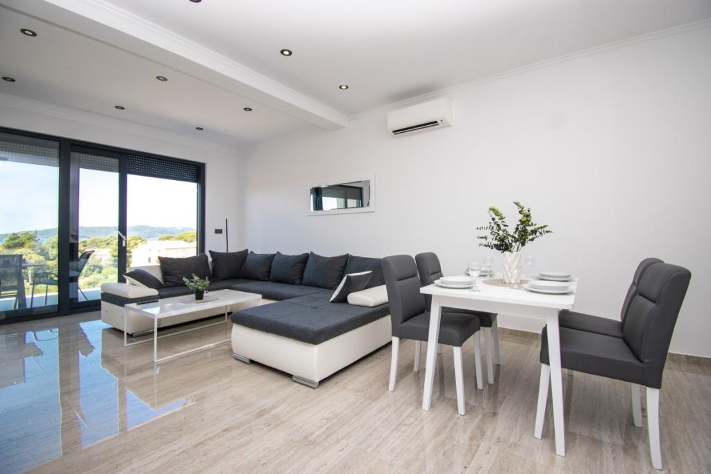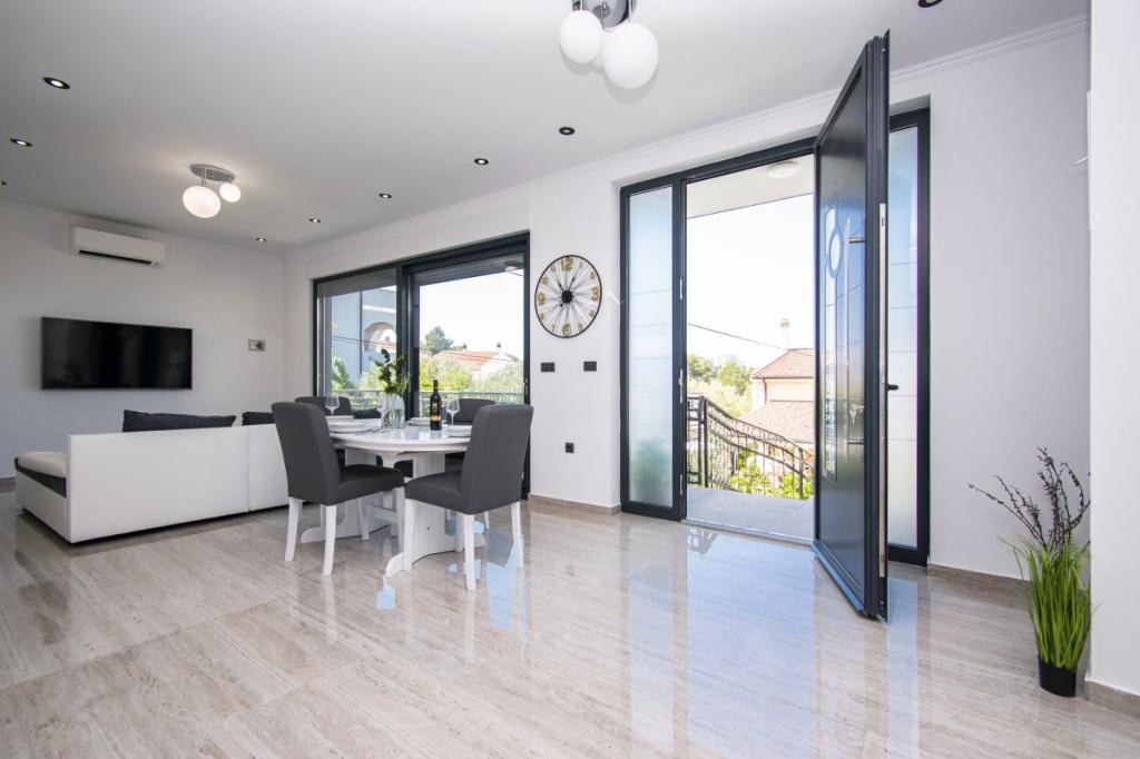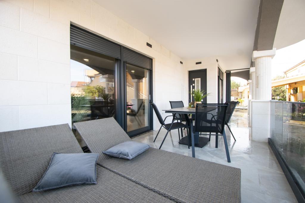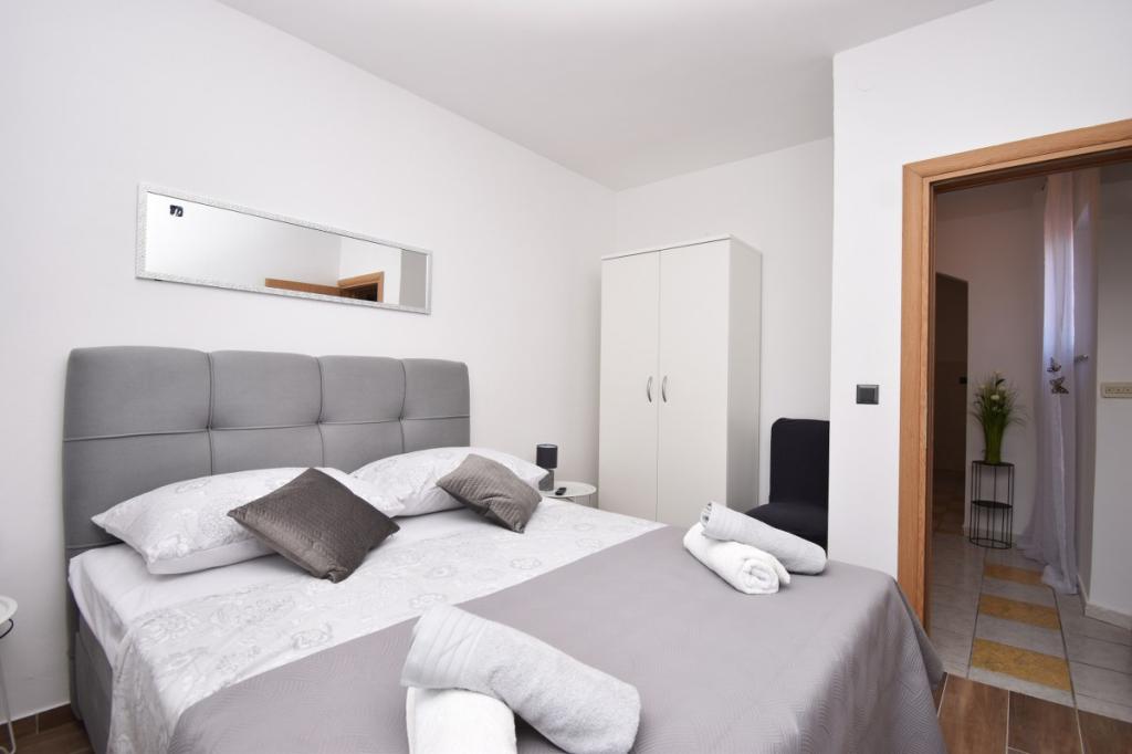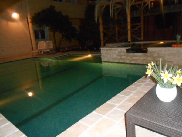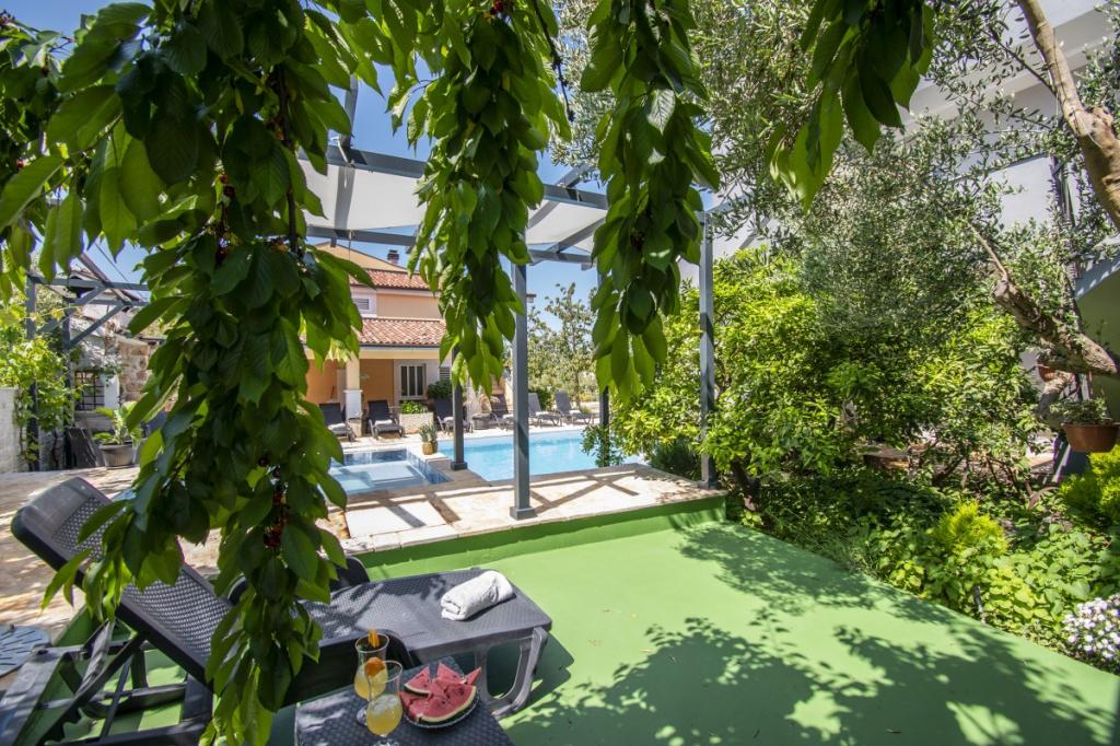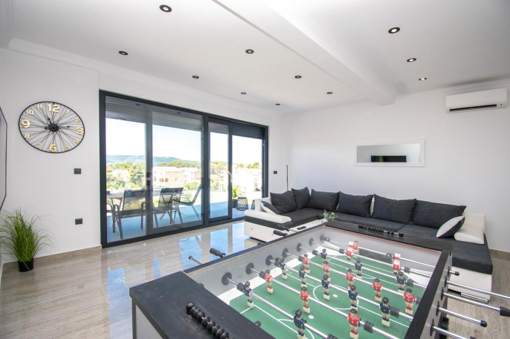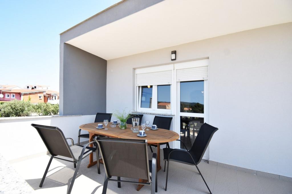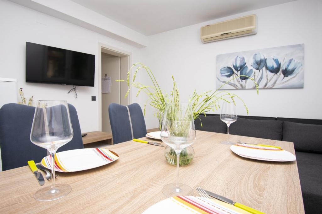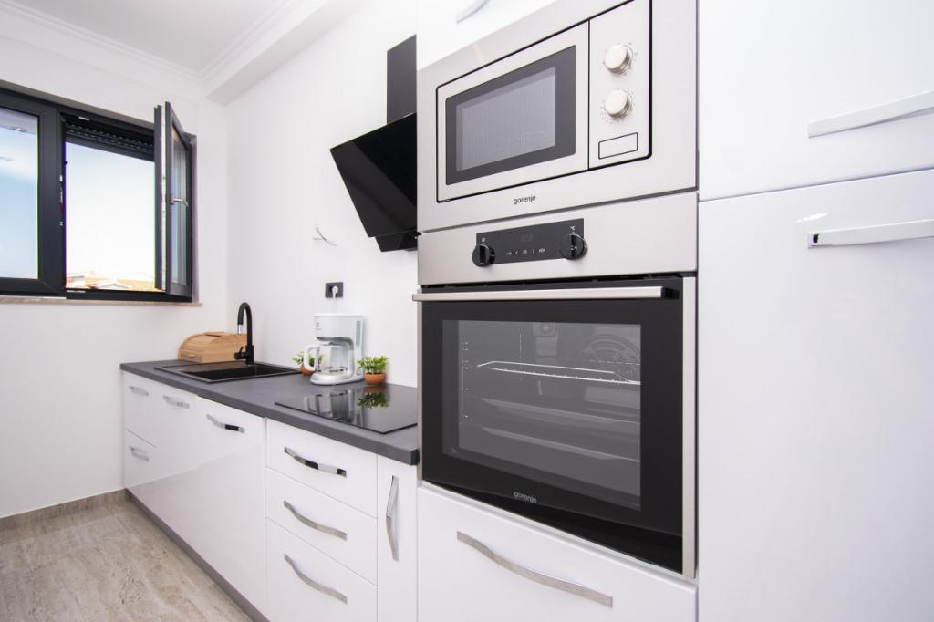 La maison pour 10 personnes avec piscine et jacuzzi est située dans un quartier calme de Brodarica, entourée de verdure et de fleurs. Les deux premiers appartements sont au rez-de-chaussée, l'un de 45 m2 et l'autre de 50 m2. Chaque appartement dispose d'une chambre double, d'une cuisine, d'un canapé-lit, d'une salle de bain et d'une terrasse avec table et chaises. Le troisième appartement de 90 m2, situé au premier étage, dispose de deux grandes chambres doubles, d'un grand salon, d'une cuisine, d'une salle de bain et d'une terrasse de 45 m2 avec table et chaises. Il convient à une famille et à des amis légèrement plus nombreux. L'appartement est climatisé. Le quatrième appartement est luxueusement agencé, d'environ 100m2, dispose d'un grand séjour, d'une cuisine entièrement équipée, d'une grande pièce avec télévision et climatisation, l'appartement dispose également d'un sauna. il y a un jacuzzi avec une grande terrasse sur le toit. chaque appartement dispose de la climatisation et chaque chambre dispose également d'une télévision. La piscine est partagée. La maison est à 5-6 minutes à pied de la mer. À côté de la maison, il y a deux autres appartements, l'un de 110 m2 luxueusement meublé et l'autre de 55 m2.
