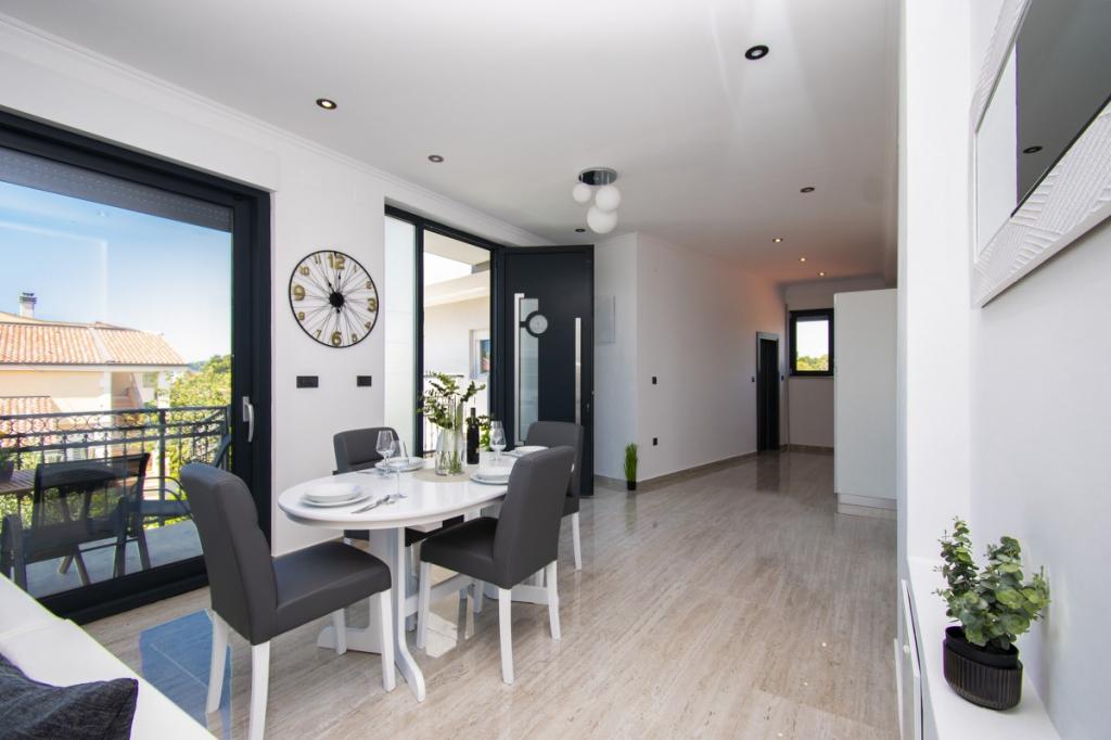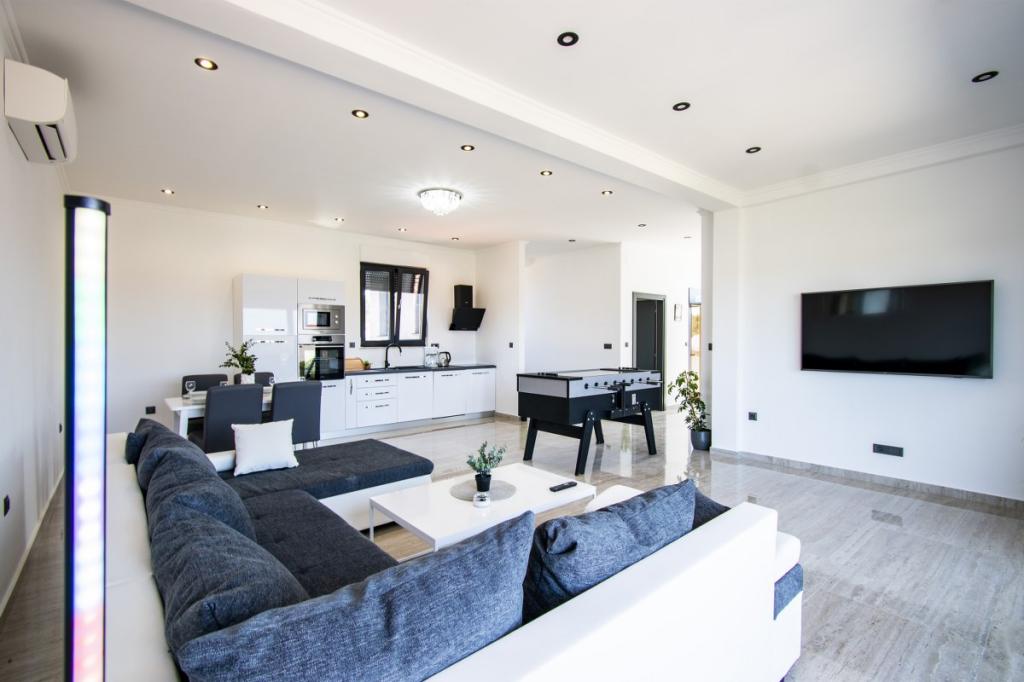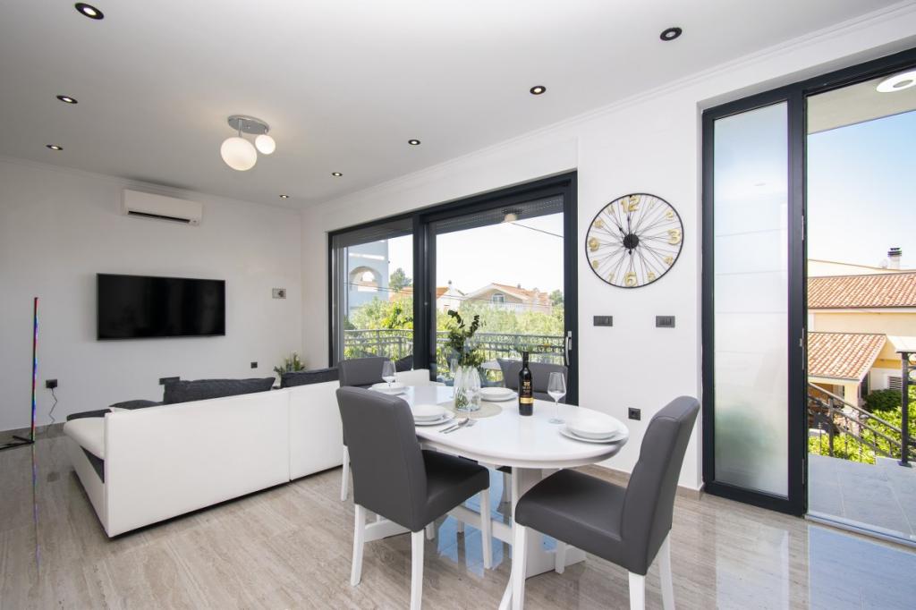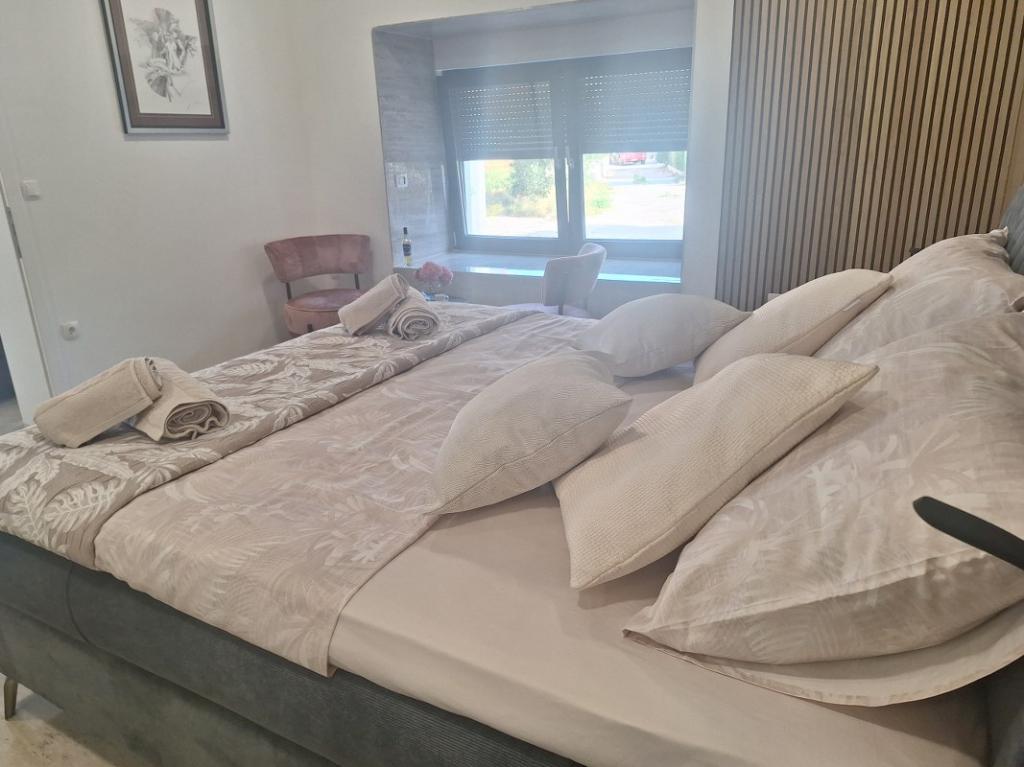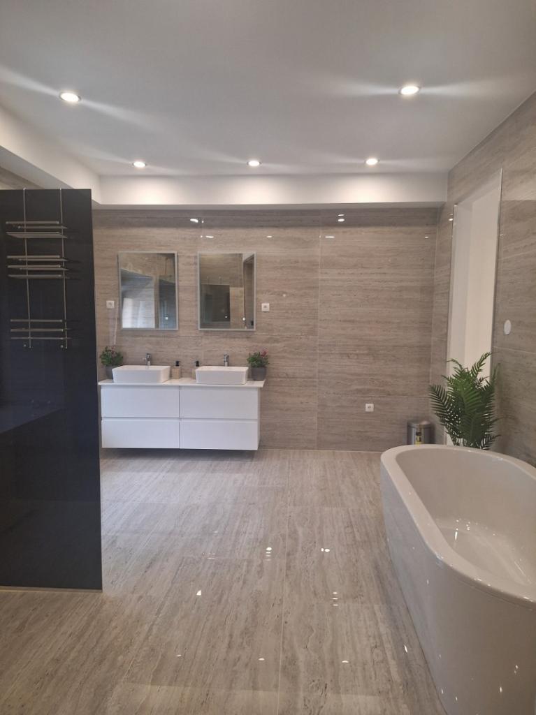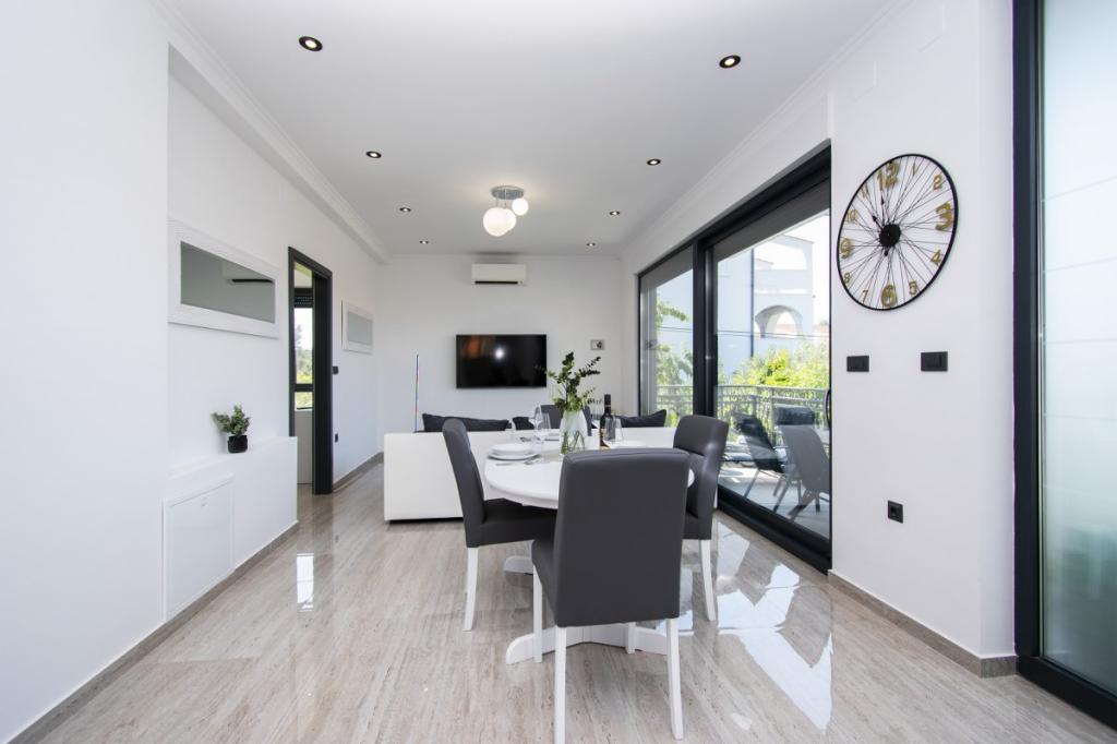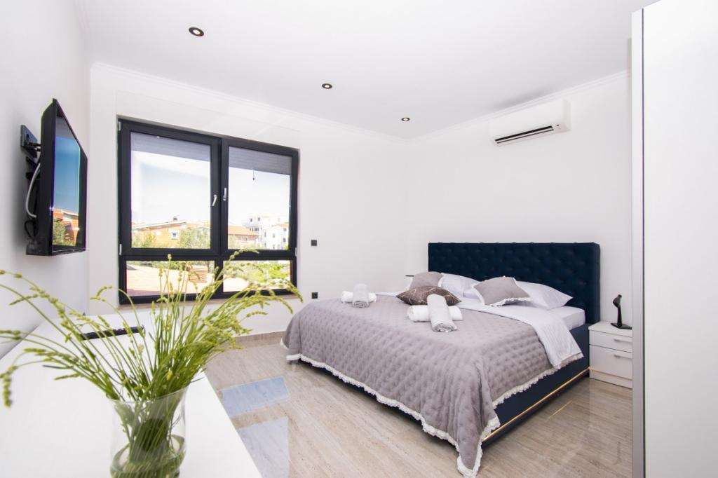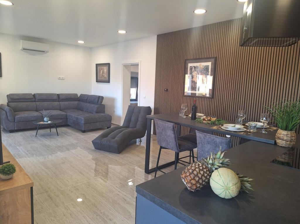La maison pour 10 personnes avec piscine et jacuzzi est située dans un quartier calme de Brodarica, entourée de verdure et de fleurs. Les deux premiers appartements sont au rez-de-chaussée, l'un de 45 m2 et l'autre de 50 m2. Chaque appartement dispose d'une chambre double, d'une cuisine, d'un canapé-lit, d'une salle de bain et d'une terrasse avec table et chaises. Le troisième appartement de 90 m2, situé au premier étage, dispose de deux grandes chambres doubles, d'un grand salon, d'une cuisine, d'une salle de bain et d'une terrasse de 45 m2 avec table et chaises. Il convient à une famille et à des amis légèrement plus nombreux. L'appartement est climatisé. Le quatrième appartement est luxueusement agencé, d'environ 100m2, dispose d'un grand séjour, d'une cuisine entièrement équipée, d'une grande pièce avec télévision et climatisation, l'appartement dispose également d'un sauna. il y a un jacuzzi avec une grande terrasse sur le toit. chaque appartement dispose de la climatisation et chaque chambre dispose également d'une télévision. La piscine est partagée. La maison est à 5-6 minutes à pied de la mer. À côté de la maison, il y a deux autres appartements, l'un de 110 m2 luxueusement meublé et l'autre de 55 m2.