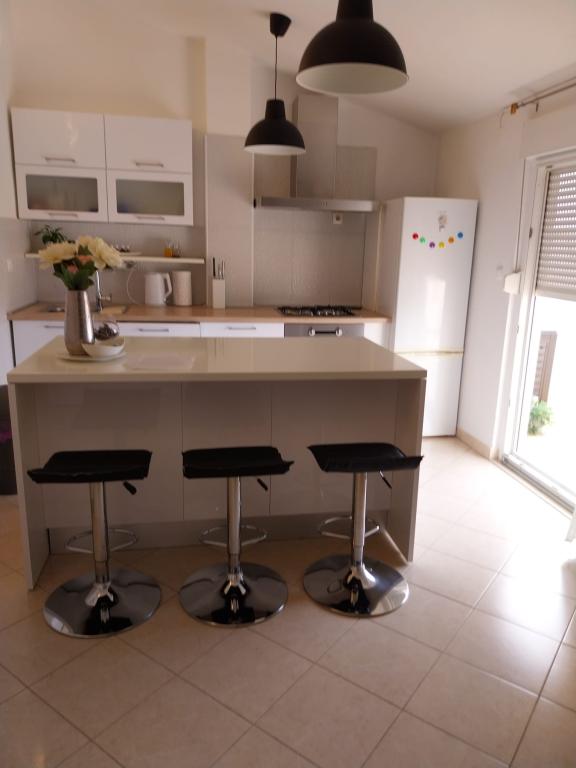 Nous avons séjourné dans l'appartement ID: 66434. Tout est tout simplement excellent !!! Linge de lit très propre, soigné et frais et serviettes blanches comme neige. La cuisine dispose de tous les ustensiles de cuisine nécessaires, tout comme la salle de bain. Un lave-vaisselle, un réfrigérateur et un lave-linge sont également à notre service. Il y a un parking pour une voiture. Cour agréable et bien entretenue. La propriétaire est une femme extraordinaire, très gentille et attentionnée. La mer est très proche, à quelques mètres de la maison.