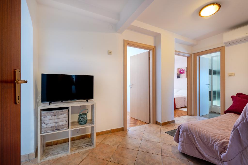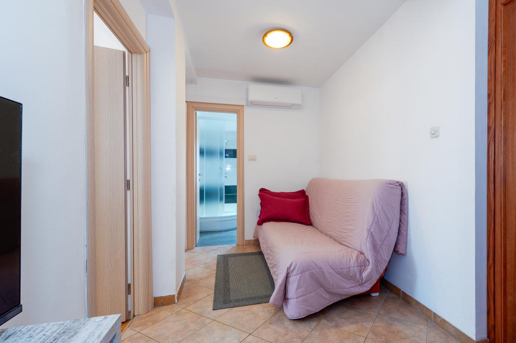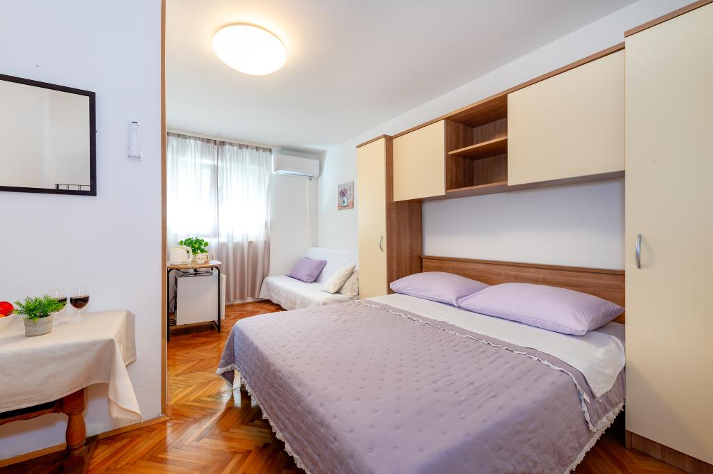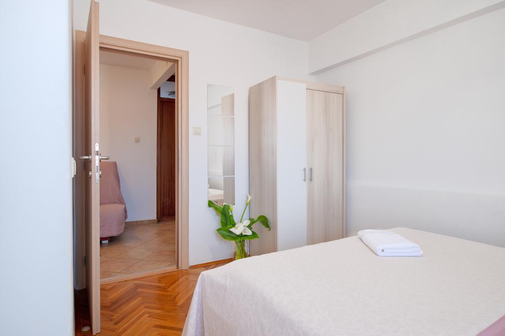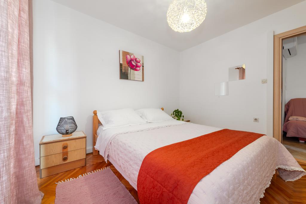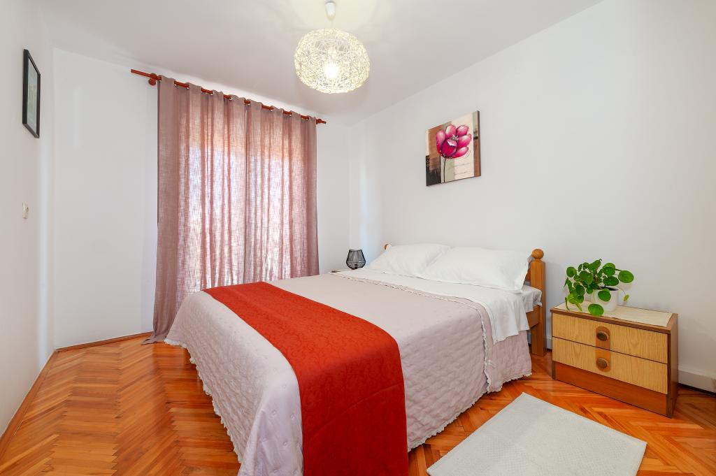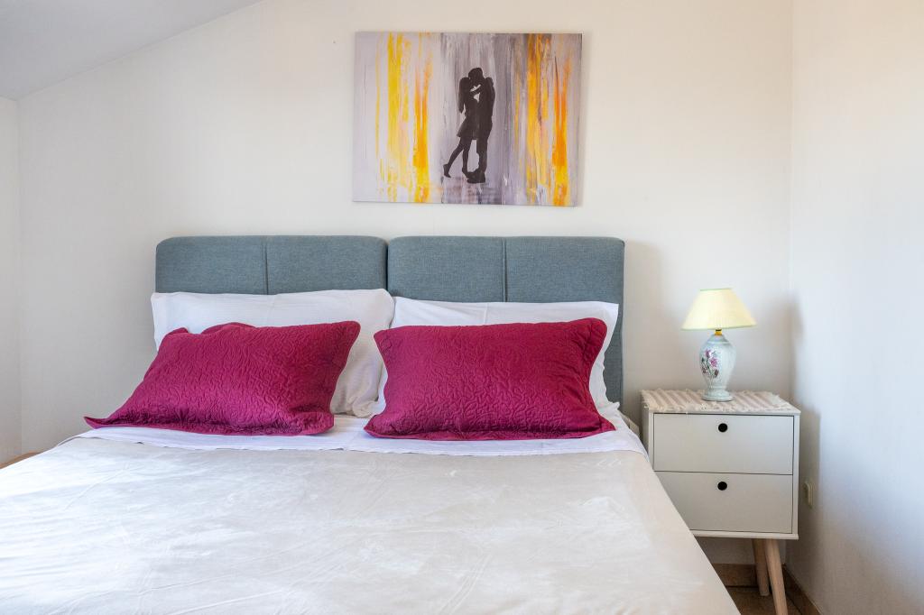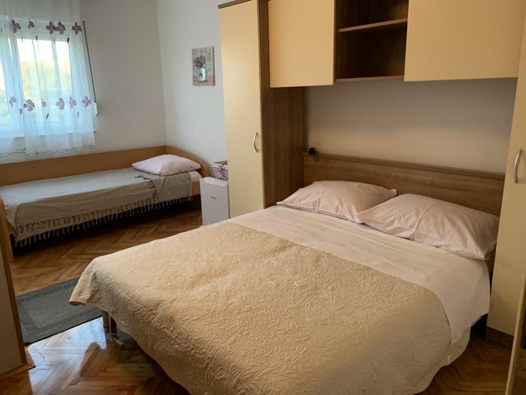 Appartement dans une belle partie de Brodarica. Vue de la terrasse sur la plage. grand parking. Griller dans la cour. à côté du grill, la table du dîner se trouve à proximité de toutes les installations. Solaris, Parcs nationaux de Sibenik Centres d'oscillation de Krka et de Kornati, aire de jeux pour enfants