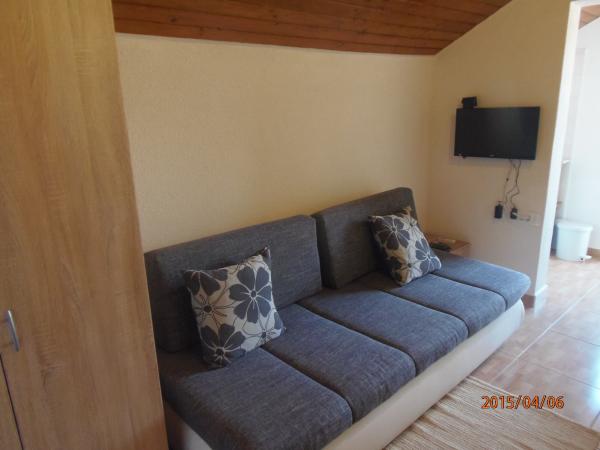 Taxe de sejour est inclus dans le prix.Propre, soigné, spacieux, avec deux balcons, un parking devant la maison pour cinq voitures, protégé par un pare-soleil, et une piscine. Proche de la mer et d'autres grandes villes pour sortir. Hôtes formidables.
