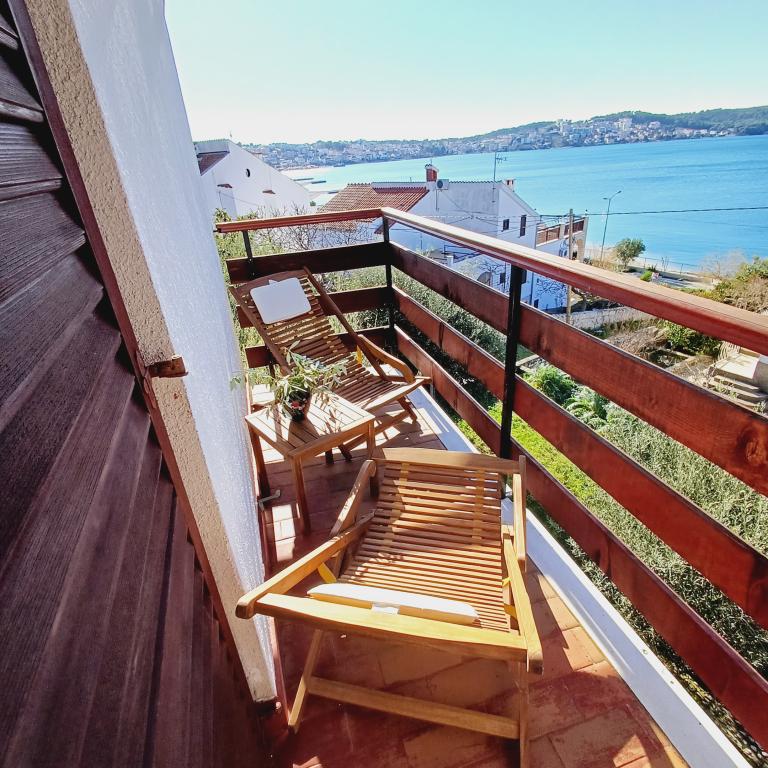 Nous avons voyagé avec 3 enfants. Il suffit de prendre l'escalier devant l'appartement jusqu'à la plage. Nous avons aimé la plage de Rožac car elle offre une ombre naturelle. L'eau et la plage étaient très belles et bien pour les enfants. Vous trouverez tout à proximité de l'appartement. L'arrêt de bus le plus proche est celui de Rožac. Vous pouvez prendre le bus pour Trogir ou pour Okrug Donji. La vieille ville de Trogir est accessible à pied. La vue depuis le balcon était fantastique. L'hôte était très sympathique. Je recommande vraiment cet appartement !