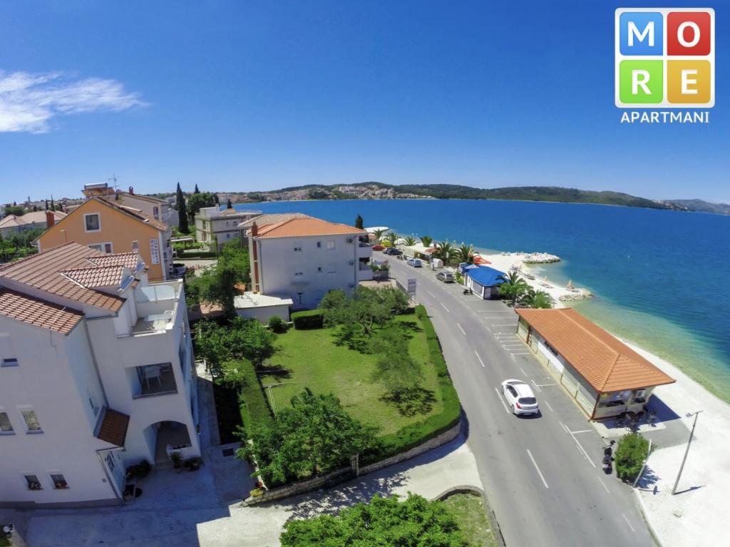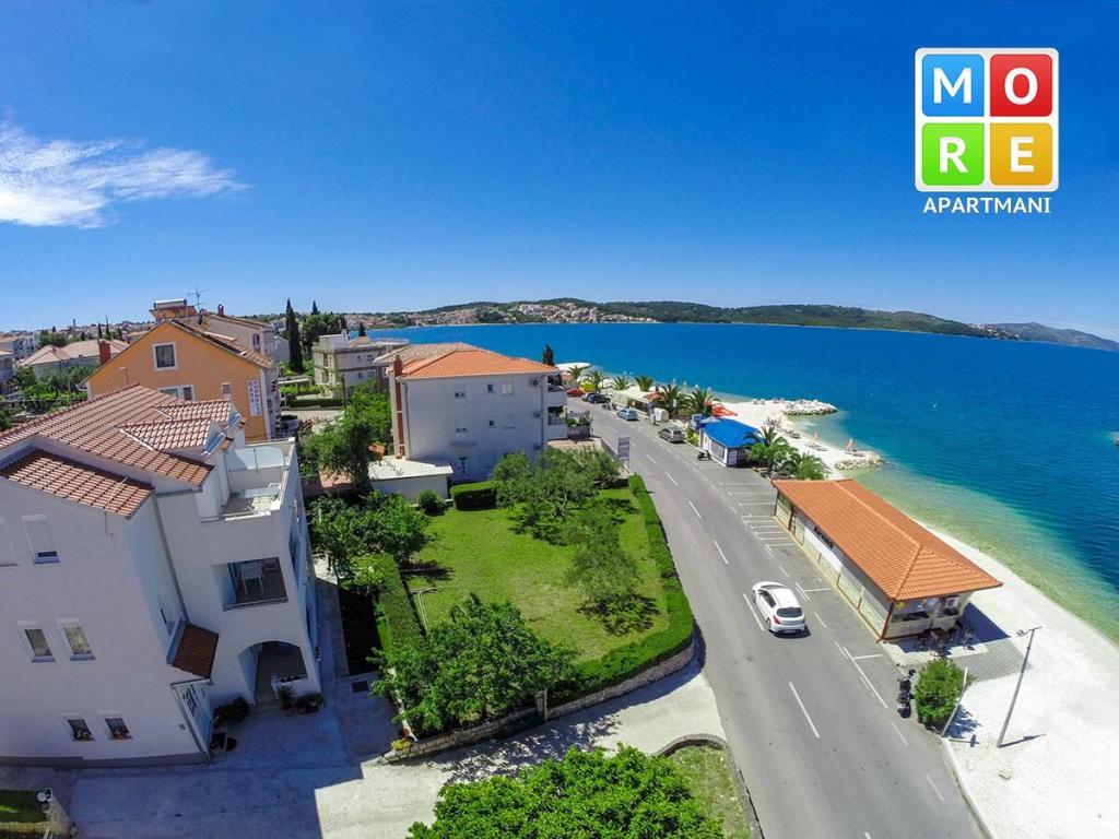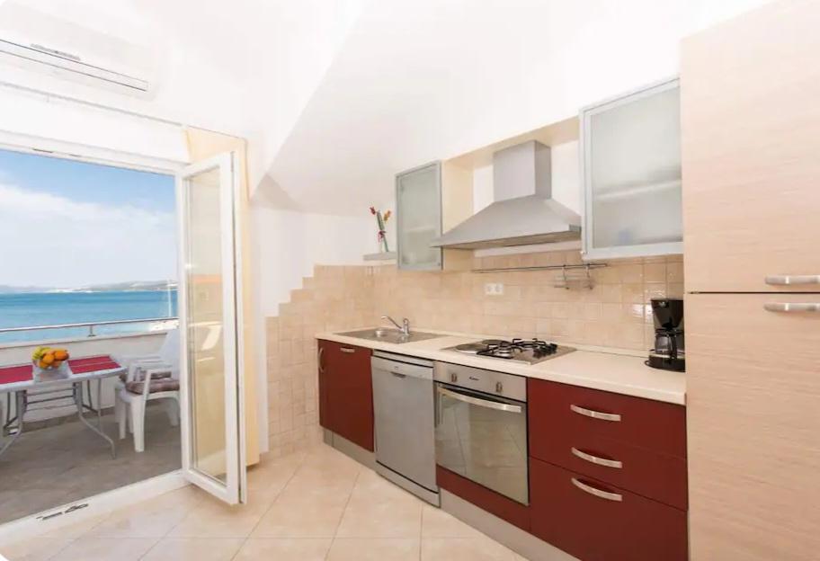 L'appartement est à seulement 10 mètres de la mer et de la plage principale d'Okrug Gornji. Il y a un supermarché, un restaurant, un café-bar et de nombreux autres services à proximité. Il est également très proche du centre de Trogir, ainsi que du port de plaisance, de la gare routière et de l'aéroport.