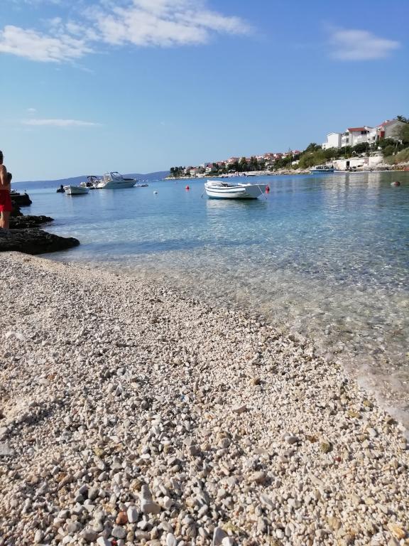 L'appartement est joliment meublé, la cuisine est entièrement équipée et vous n'êtes pas loin de la plage. L'endroit est un peu à l'écart de la scène de la fête, ce qui était très bien pour nous - qui aime le calme est entre de bonnes mains ici. Le centre de plongée à proximité offre de bons prix et de beaux spots. Trogir et Split sont accessibles en ferry et méritent une visite ! Le shopping est disponible en haut de la colline à Okrug Gornji - soit vous aimez marcher, soit vous avez un véhicule. Les hôtes sont cependant très serviables - nous ont proposé de nous emmener faire du shopping dans leur voiture, que nous n'avons pas eu à utiliser car nous aimons marcher et n'avons pas eu besoin d'acheter de grandes quantités. Mais merci encore pour le transfert aéroport !
