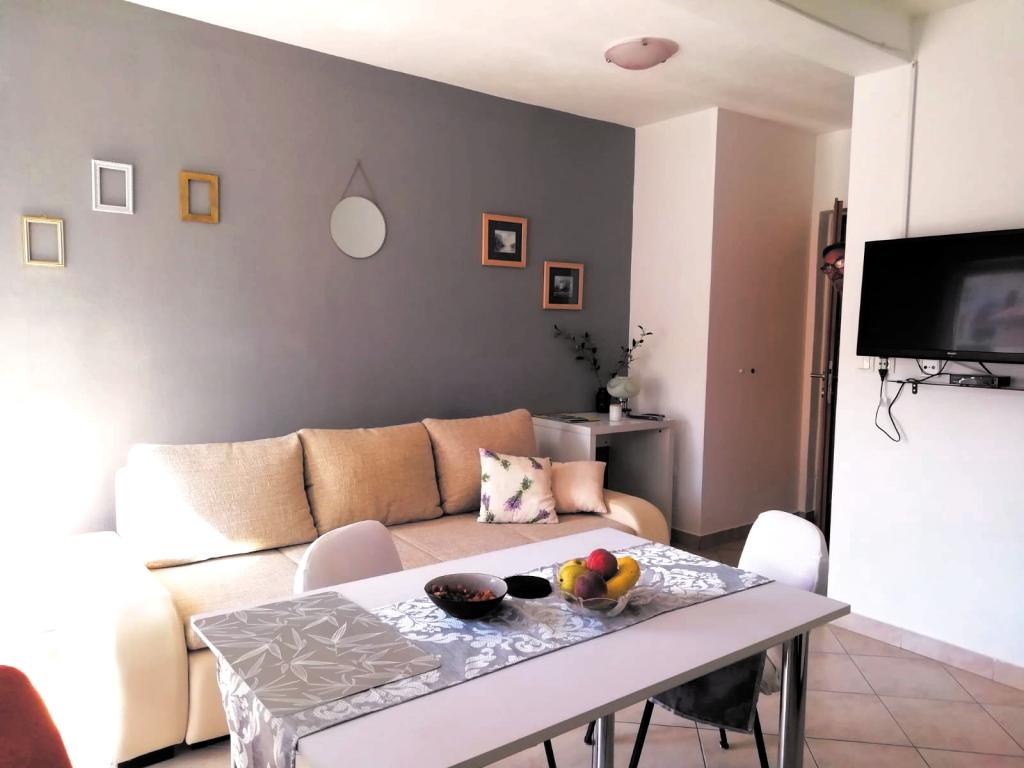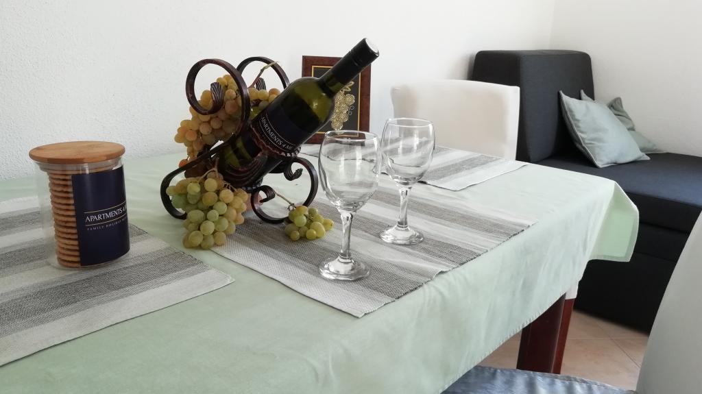 L'appartement est joliment décoré, propre et dispose d'une belle grande terrasse. Les propriétaires des appartements sont sympathiques, arrangeants, tous les éloges. Non loin de l'appartement, il y a de petites criques, de belles plages, une mer propre et bleu-vert. Je recommande vraiment!
