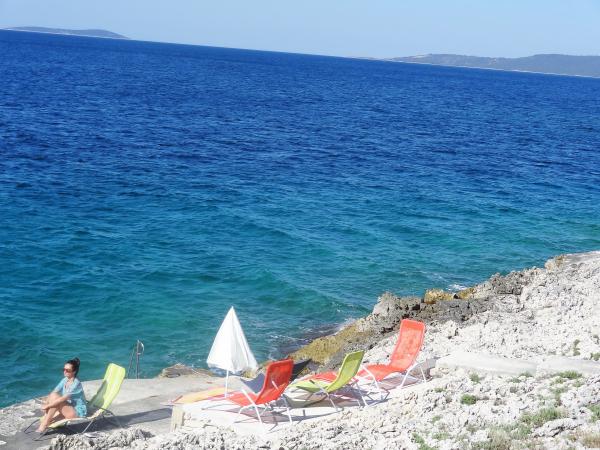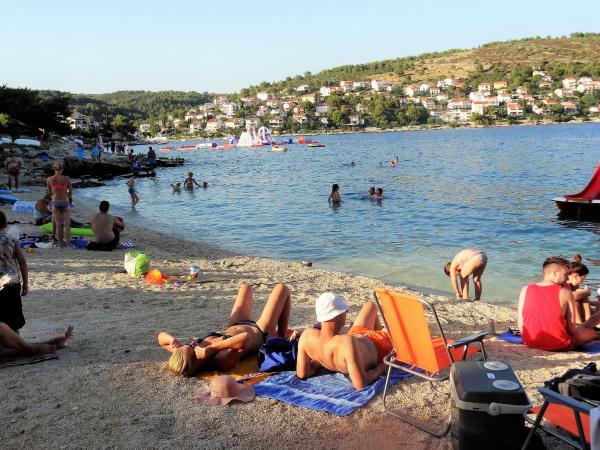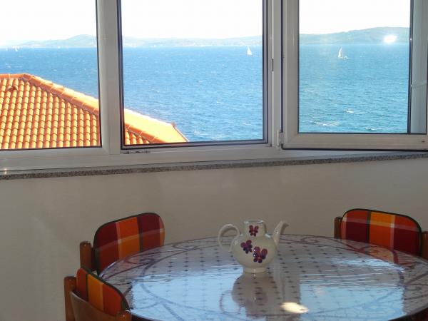 La maison est sur 3 niveaux. Chaque étage a sa propre entrée, parking et balcon avec table et chaises. Appartement pas. 1 (premier étage) dispose d'une chambre avec un lit double et une salle de séjour avec un lit double au clic clac. Appartement pas. 2 (deuxième étage) dispose d'une chambre avec lit double et salle de séjour (chambre privée) avec canapé-lit de luxe (160x 200) pour deux personnes, plus blagavona. Ap pas. 3 est au troisième étage a un lit double et la. Salle de séjour (chambre privée) avec un canapé de luxe (160 X200) pour deux et salle à manger. La mer et la plage est exactement 70 mètres. La maison a une vue sur la mer et les îles. À pied, vous pouvez rejoindre le marché pendant 3 minutes, 5 minutes des restaurants, des églises, des supermarchés, les marchés, les banques et les médecins sont accessibles en 15 minutes. Aeodrom est udaljen10 kilomètres. Les appartements sont bien équipés. Ils sont situés à 60 mètres de la plage la plus proche, dans un côté ensoleillé tranquille, au sud de Ciovo. Avec un prix abordable et avec un riche patrimoine culturel divertissement passer vos vacances .