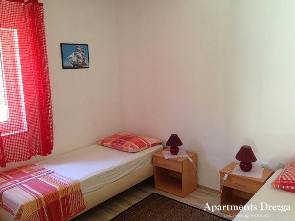 Appartements entièrement équipés, situés au deuxième rang de la mer. L'appartement du rez-de-chaussée dispose de deux chambres et celui de l'étage de 3 chambres. Chaque appartement possède sa propre grande terrasse. L'installation est située à 20 m de la plage adaptée aux petits enfants et aux non-nageurs. Il y a une école de plongée à proximité, et à 15 minutes à pied du petit centre avec la poste, la pharmacie, les cafés, les magasins, le médecin et un petit marché. A 4 km de l'appartement se trouve Trogir, un musée de la ville sous la protection de l'UNESCO.