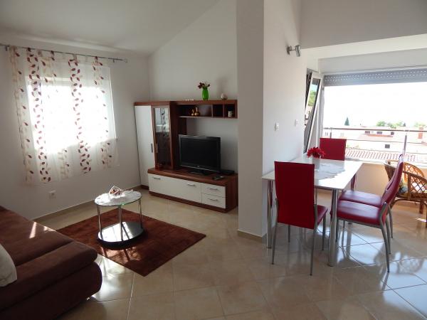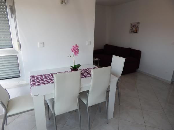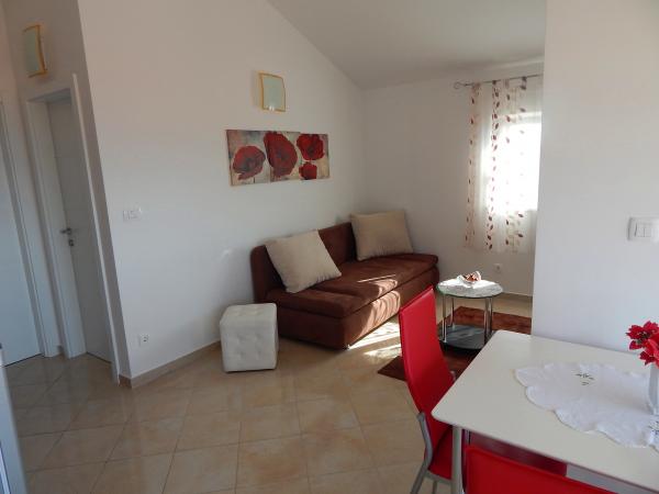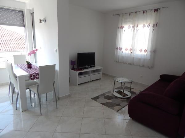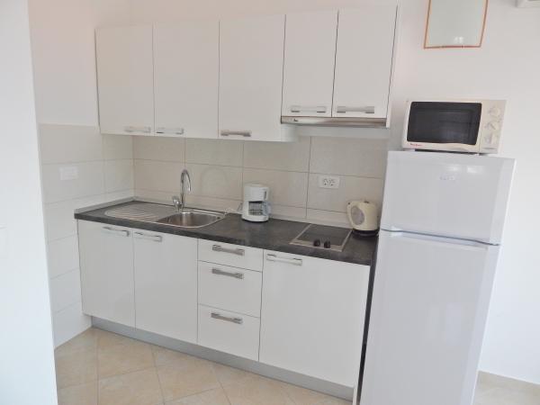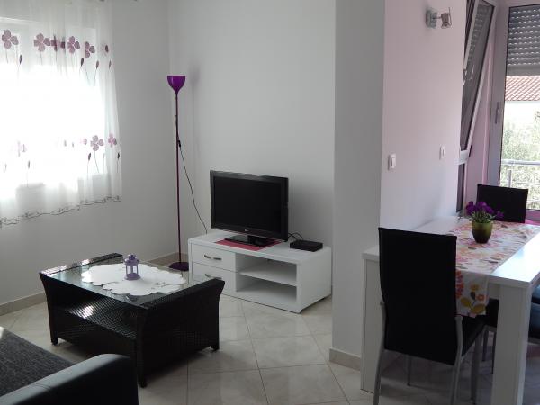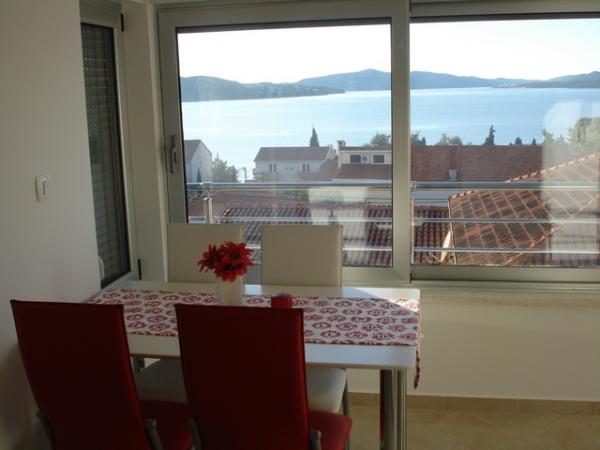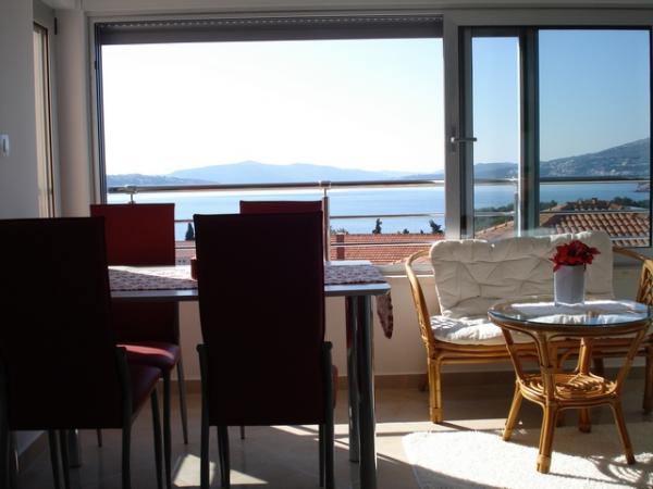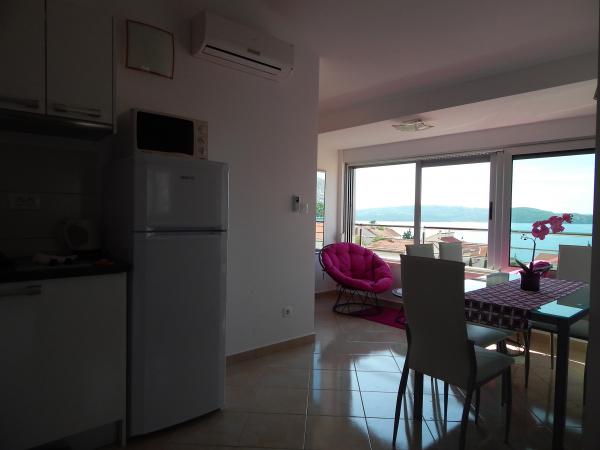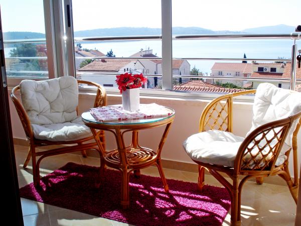 Nouveaux appartements climatisés, meublés de façon moderne et entièrement équipés avec vue sur la mer, à seulement 80 m de la mer et de la plage la plus proche. Tous les appartements disposent d'une connexion Internet gratuite (WiFi) et d'une télévision par satellite à écran LCD. Ils sont situés à Okrug Gornji, loin du centre la ville historique de Trogir à 1,5 km. Les appartements sont pour 2-4 personnes avec une chambre et un canapé-lit, cuisine équipée (cuisinière, four, réfrigérateur, cafetière, bouilloire électrique), salon, salle de bain et balcon vitré. Vous pourrez utiliser le lave-linge commun. En face de la propriété est un parking gratuit et barbecue. Le restaurant et la boutique les plus proches sont à seulement 100 mètres. Les bars sont à 250m.