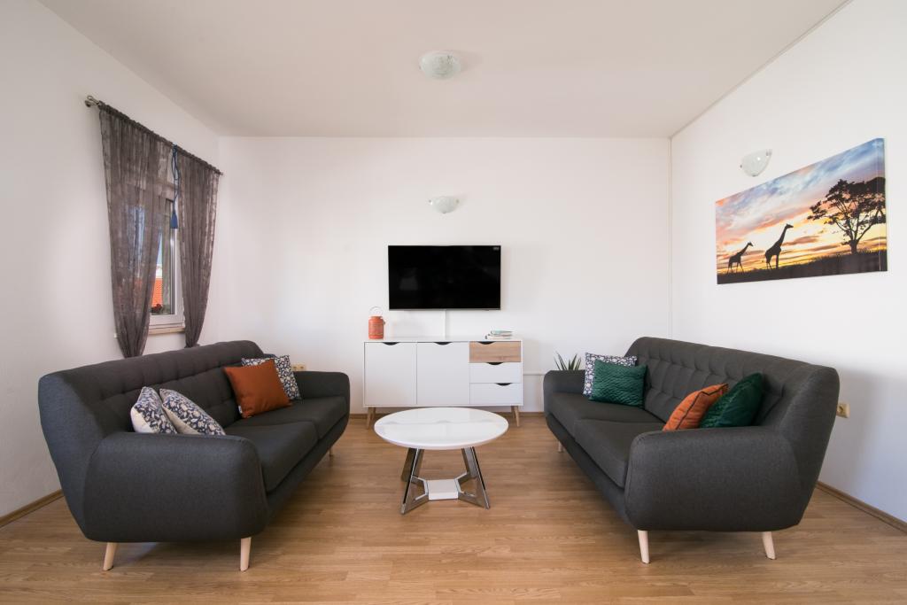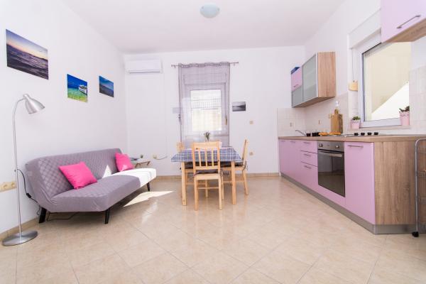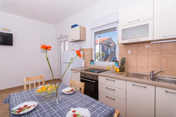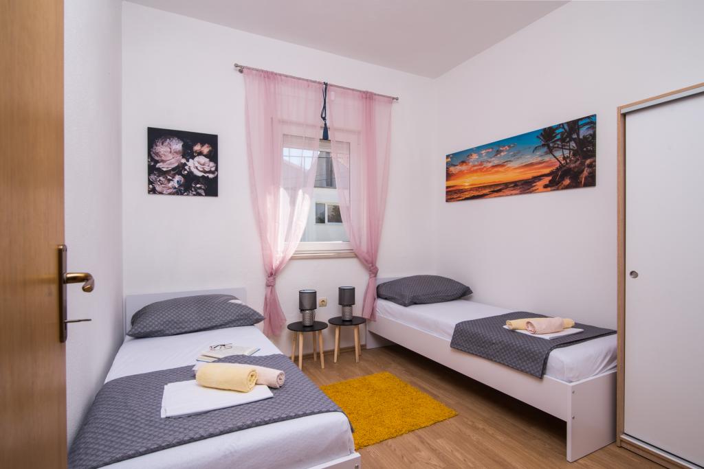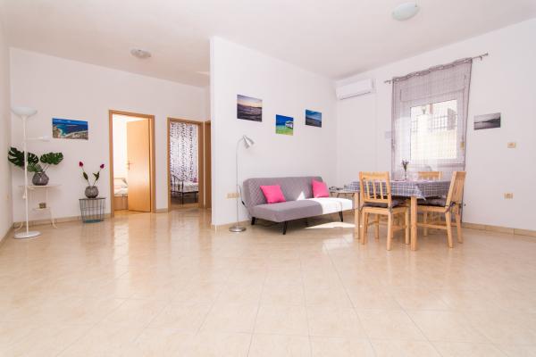 Appartements entièrement équipés et modernes situés dans un quartier calme d'Okrug Gornji, à 150 mètres du centre-ville. Ils disposent de tout le nécessaire pour un séjour des plus agréables. La proximité du centre-ville (à 5 minutes à pied) (poste, marché, commerces, cafés, restaurants et pharmacie) et des plages rend notre établissement encore plus attrayant. Le calme de l'établissement vous permettra de profiter pleinement de votre séjour et de savourer tranquillement votre café du matin sur la terrasse devant l'appartement.
