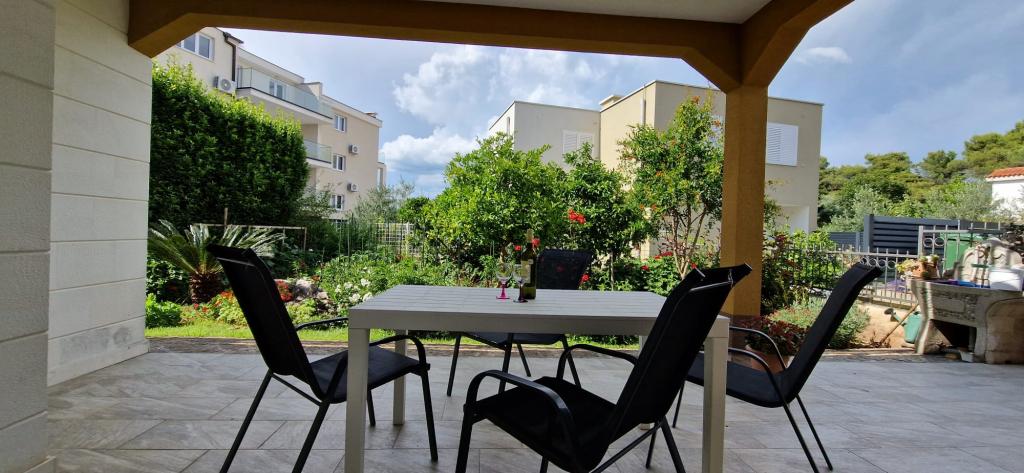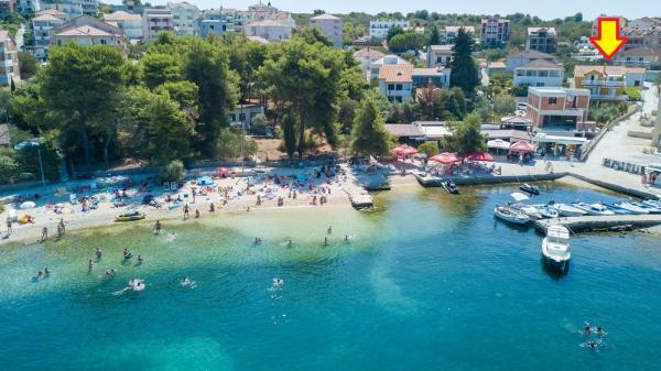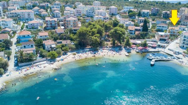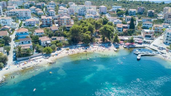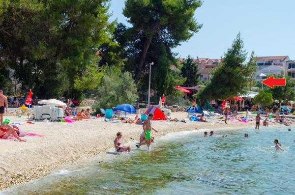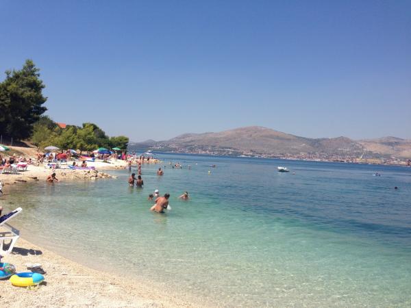 Bons propriétaires. Quartier calme de la ville. 15 minutes du centre-ville. 10 minutes en voiture à Trogir. 40m de la plage, avec de très petites pierres. Les chambres sont propres et agréables. Gospadarz faire du bon vin. Nous recommandons vivement appartement Milka, nous avons eu de belles vacances.