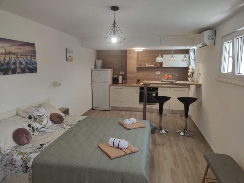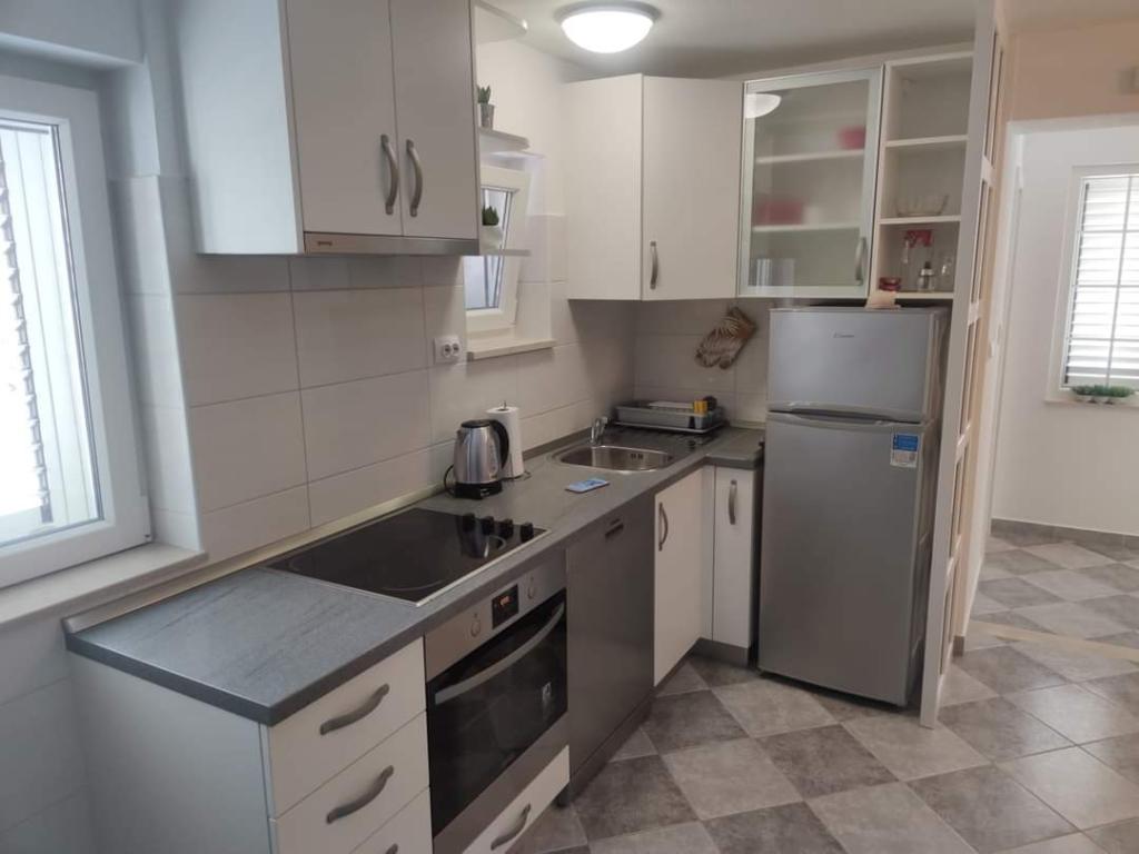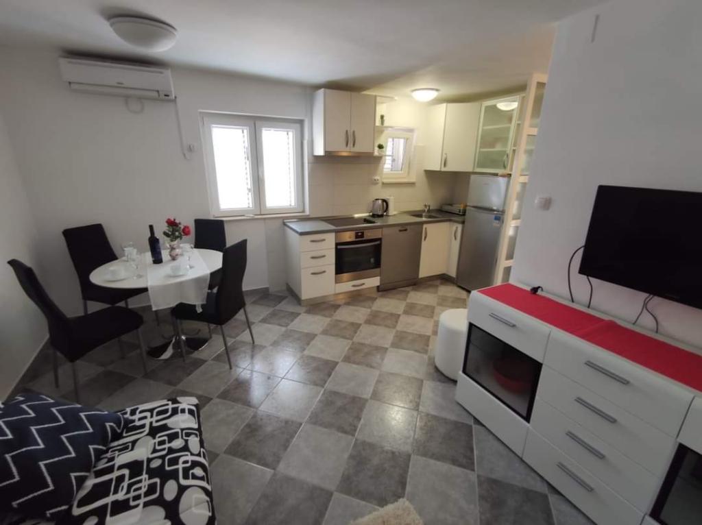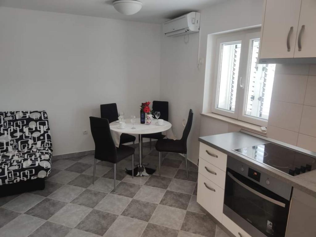 Les appartements sont situés dans un quartier calme entouré de verdure. La plage est à 200 m soit à moins de 5 minutes à pied. L'application Studio est conçue pour 2 personnes, avec le fait qu'un enfant plus petit peut également utiliser un lit parapluie. L'appartement 2+2 est idéal pour une famille avec des enfants jusqu'à 10 ans. Tout est à portée de main, vous n'avez donc pas besoin de voiture.