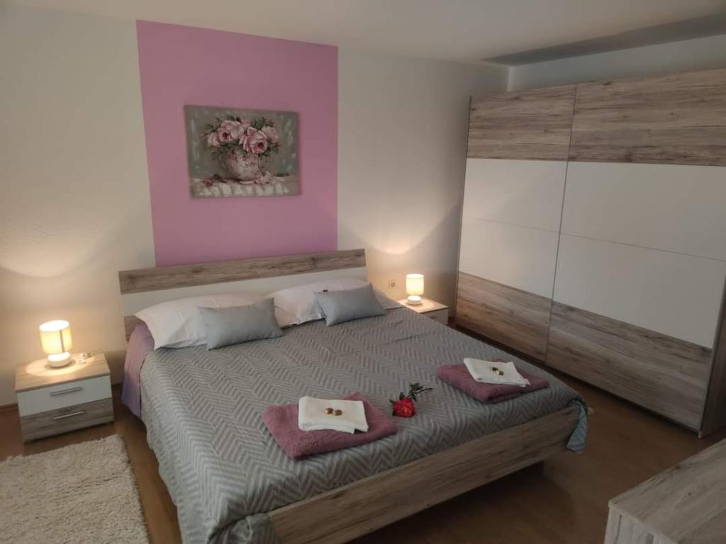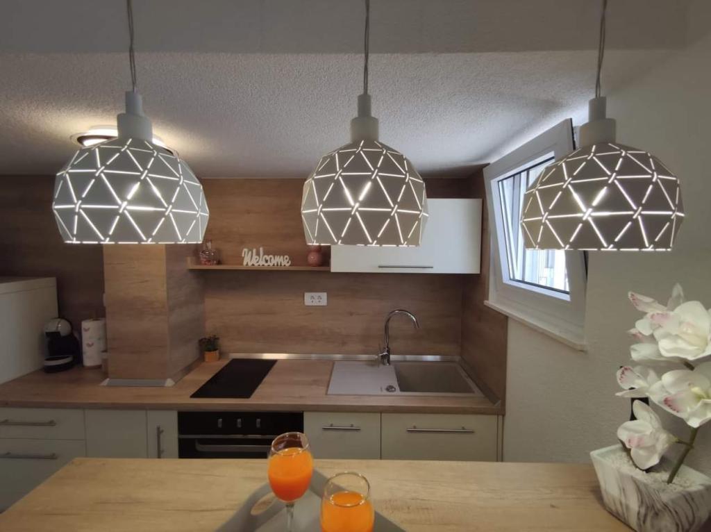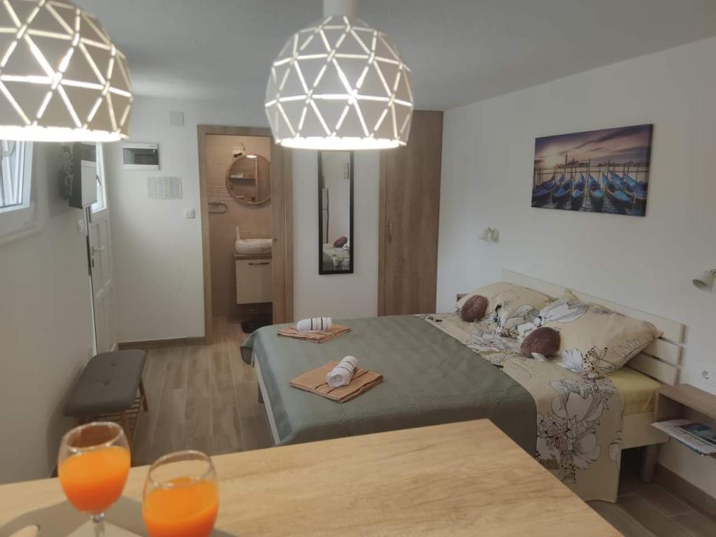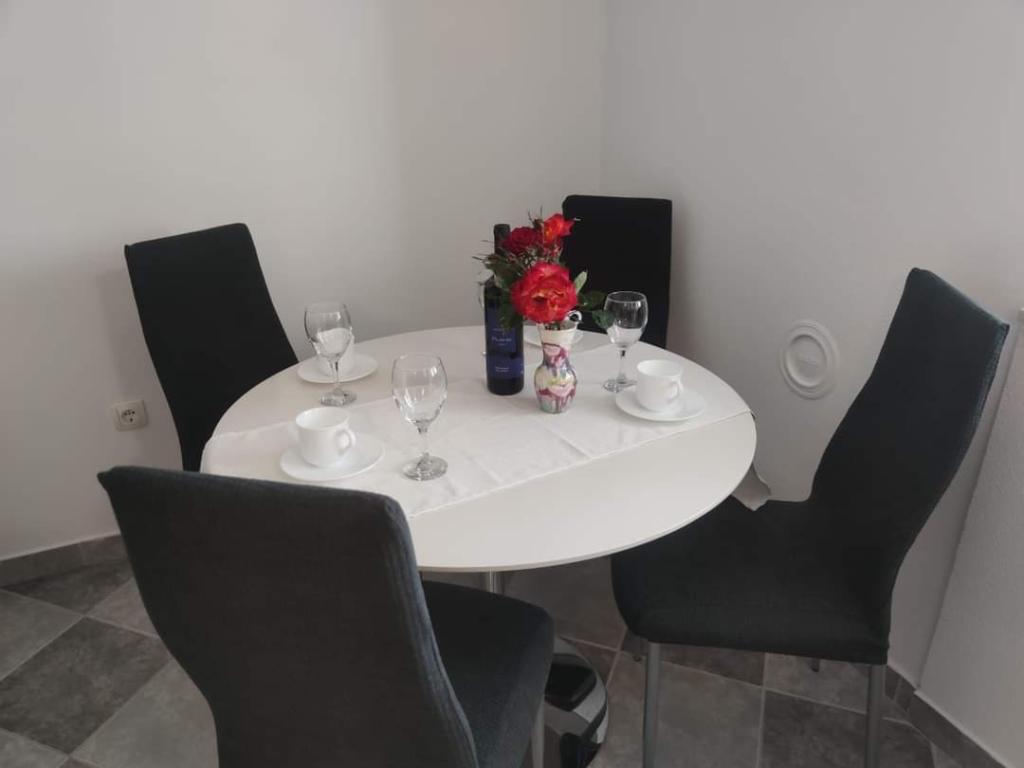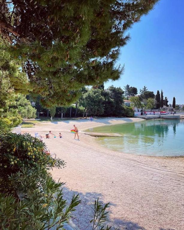 Les appartements sont situés dans un quartier calme entouré de verdure. La plage est à 200 m soit à moins de 5 minutes à pied. L'application Studio est conçue pour 2 personnes, avec le fait qu'un enfant plus petit peut également utiliser un lit parapluie. L'appartement 2+2 est idéal pour une famille avec des enfants jusqu'à 10 ans. Tout est à portée de main, vous n'avez donc pas besoin de voiture.