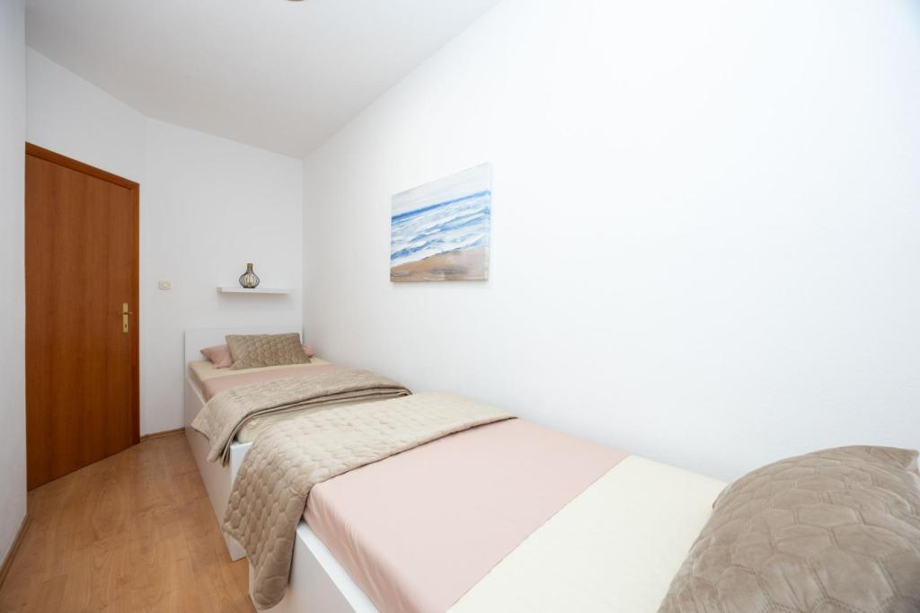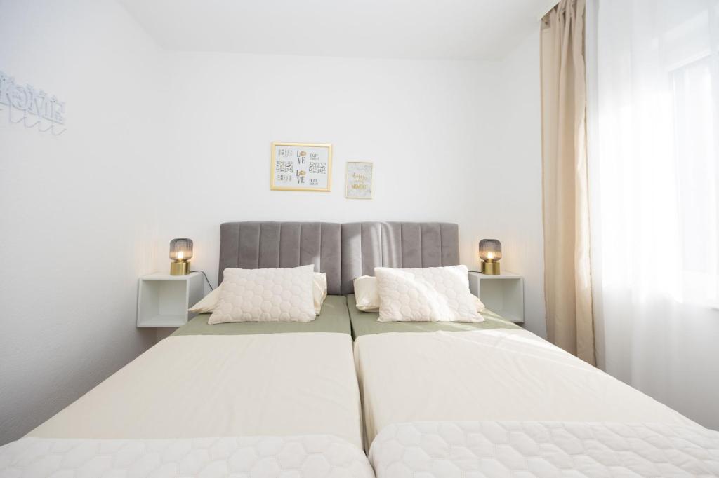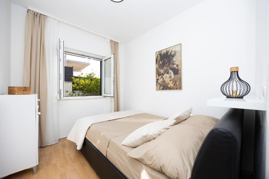 Apartments Nela sont équipés d'un hébergement confortable, situé sur le côté sud de la péninsule de Ciovo. Plus précisément, dans la baie Movarstica. La vue s'étend sur les îles de Solta et Drvenik. A proximité se trouve la belle ville historique de Trogir qui ravit par son architecture et de divertissement. A proximité il y a l'aéroport de Split (6 km), la ville de Kaštela (6km), Split (33 km). . Passez vos vacances dans un endroit calme, se détendre et profiter de la mer idyllique, Bokun bonne nourriture et un verre de vin et de l'eau. Apartments Nela sont le choix idéal pour vous. Famille Rajcic vous nestrepljivo prévu!