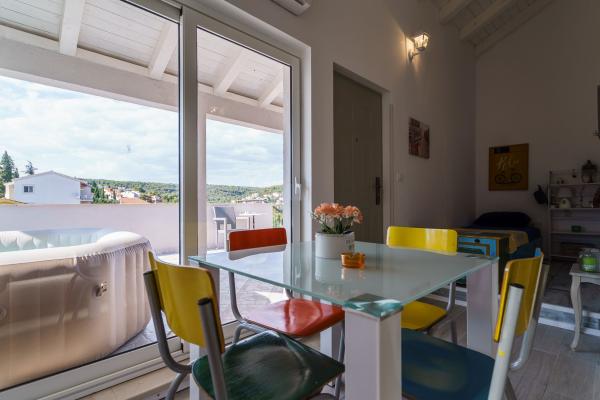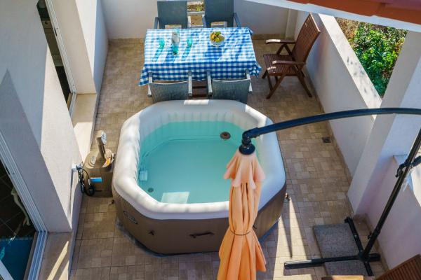 Nous deux petits forfait de Vacances enfants de 7 à 10.7. 2017 dans l'appartement A3. Appartement parfaitement correspondant à des images et a dépassé toutes nos attentes dans tous les sens. Ce que nous avons été particulièrement impressionnés le jacuzzi sur une immense terrasse, qui est également équipé d'un télescope, puis les vélos électriques, ainsi que l'accessibilité à l'hôte, et Tamar en charge de l'installation. En outre, l'appartement a tout ce dont vous avez besoin ua agréable séjour et séjour sans stress avec les enfants. De lit bébé, machine à café (et du café pour le café !!!), fours, grille-pain, des babioles qui comptent vraiment (huile, vinaigre, sel, sucre, gel douche) ... même, fil et aiguille Alors, que dire si un hôte parfait et de l'équipement parfait. La plage est à environ 90 m de l'appartement. Il est positif qu'il ya un petit café, assez peu profond pour les enfants, parc aquatique, mais pas trop de monde! Hôte de nous a recommandation 100% des citoyens de Osijek thé