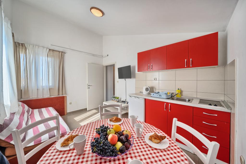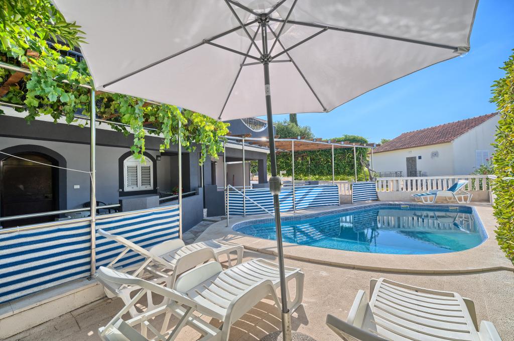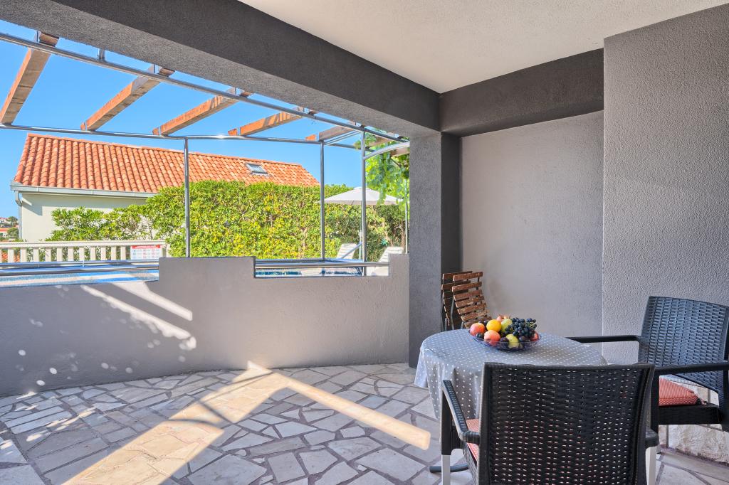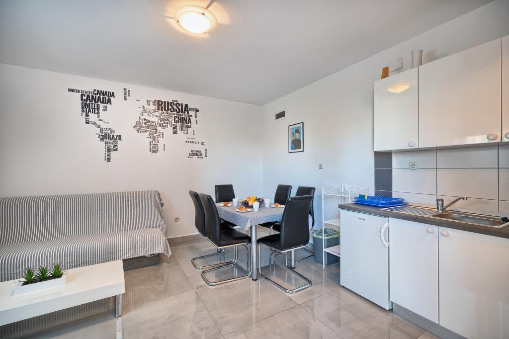 Ticic appartements sont situés dans la baie Mavarstica, qui est situé sur le côté sud de Ciovo, situé à 1,5 km de Okrug Gornji et à 5 km de la ville de Trogir. Nouveau bâtiment qui propose cinq suites et App 1 (4), App 2 (5 +1), App 3 (4 +1), App 4 (3 +1) et Appartement 5 assure que tout le monde va sûrement trouver par vous-même logement adapté. Tous les appartements ont une belle vue sur la mer, et en face de la maison il ya une piscine qui fournissent actuellement relaxer et se rafraîchir. Pour votre voiture à l'arrière de la maison il ya un grand parking privé où vous serez en mesure de quitter librement leurs animaux de compagnie de l'étain et de profiter des vacances sans soucis.